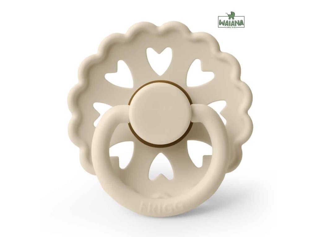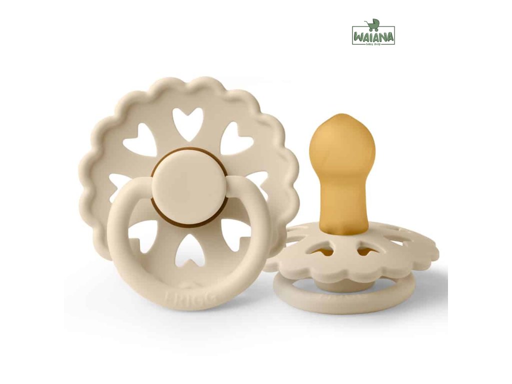 Kolekcia cumlíkov FRIGG Fairytale je inšpirovaná umeleckou tvorbou dánskeho autora H.C. Andersena. Vrúbkované okraje a malé srdiečka vo vnútri štítu napodobňujú jeden z jeho papierových výstrižkov. Každá farba cumlíka je pomenovaná podľa jeho známych rozprávok, ktoré dodávajú cumlíkom nádych fantázie. Tento mimoriadne krásny cumlík, s moderným dizajnom a elegantnými detailmi, upúta pozornosť každej štýlovej mamičky.