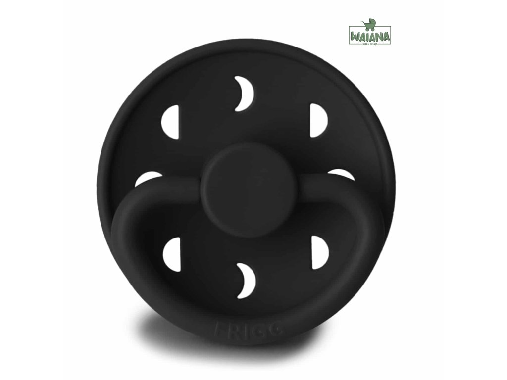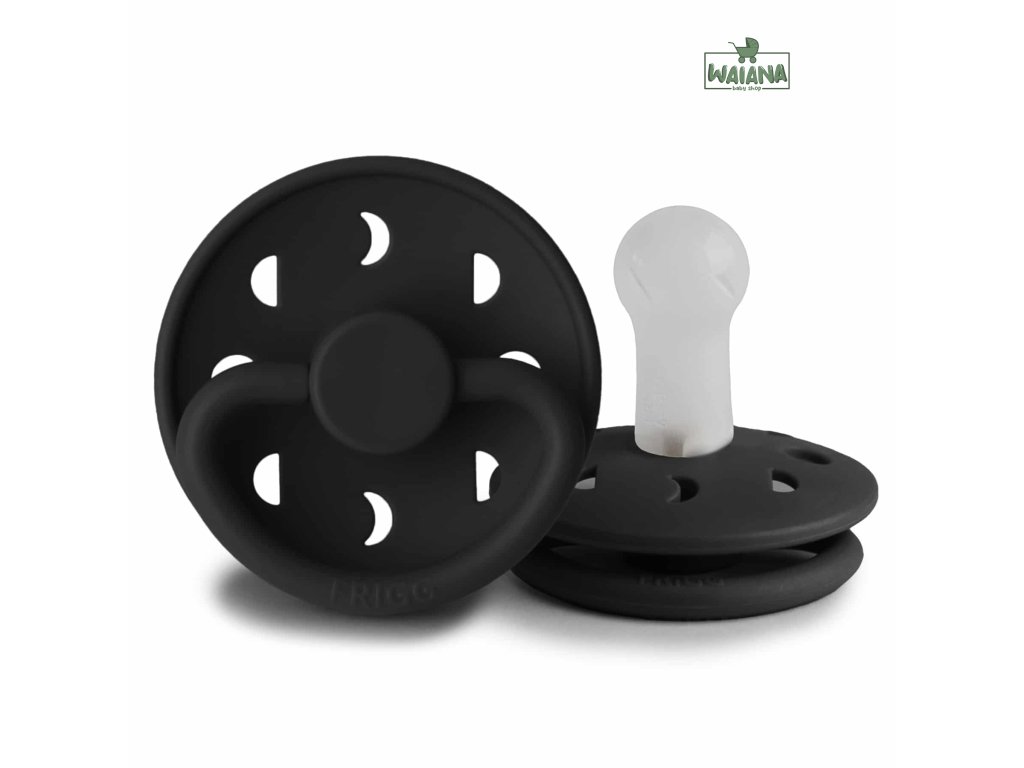 Silikónový cumlík, vhodný pre deti od 6 mesiacov, so vzorom mesiacov.