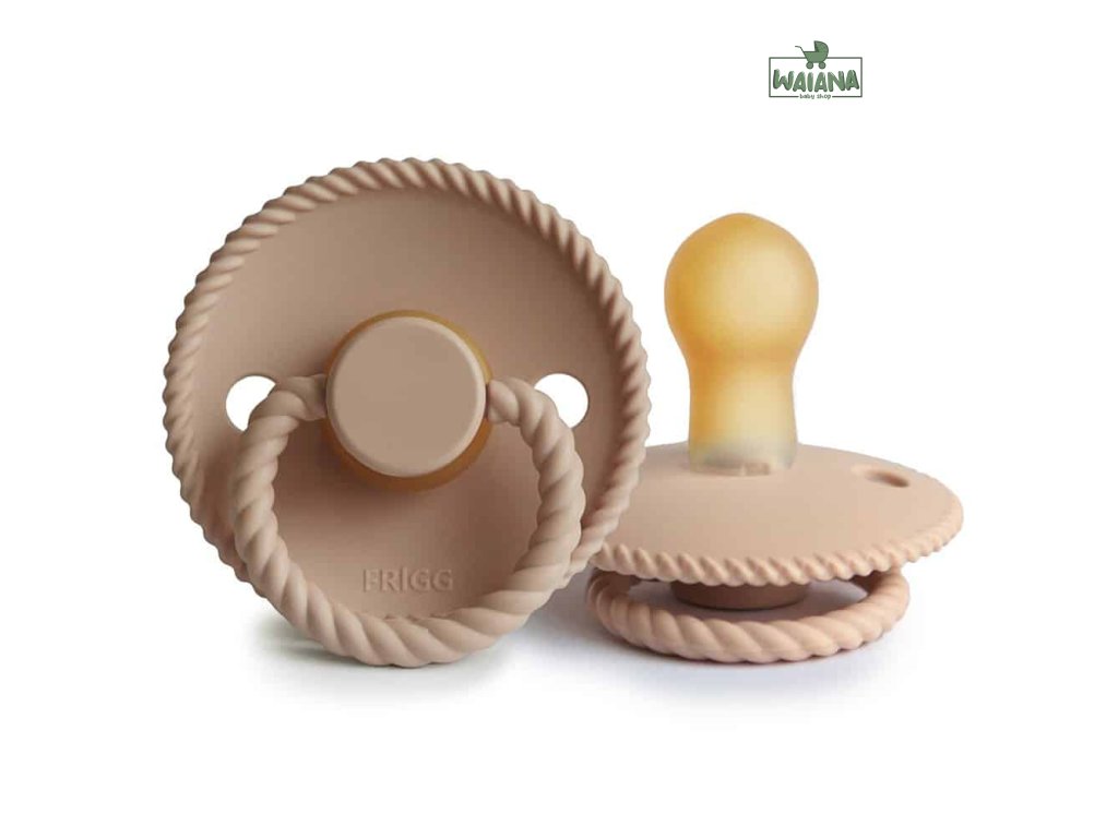 Kaučukový cumlík, vhodný pre deti od 6 mesiacov, so vzorom lana.