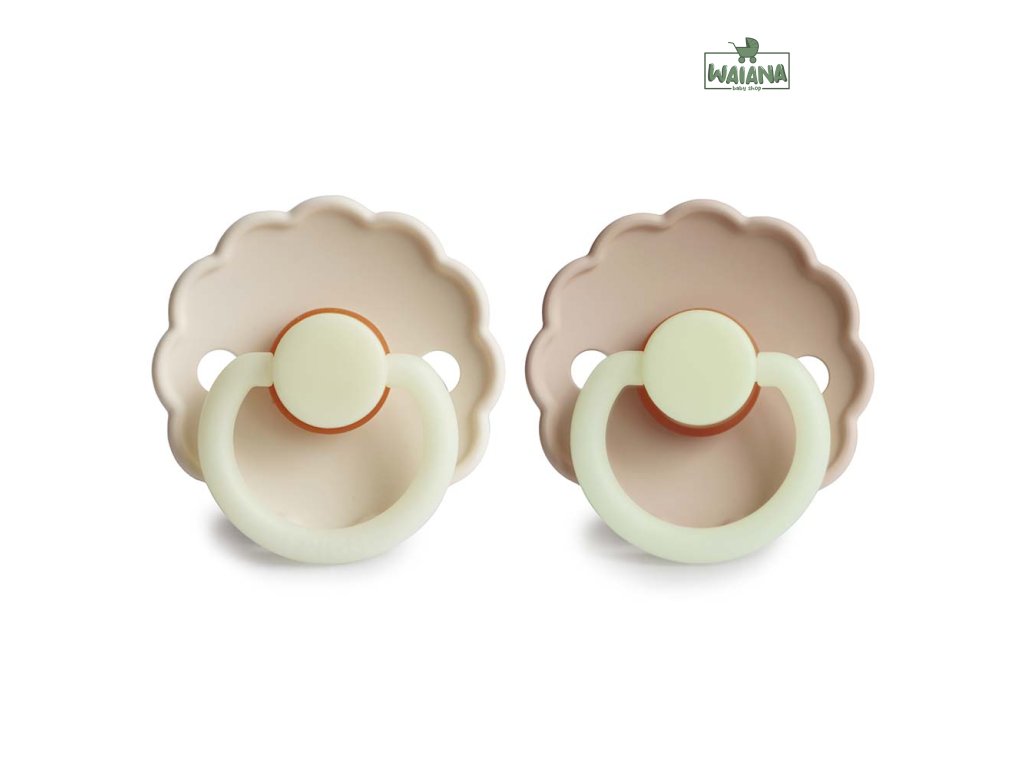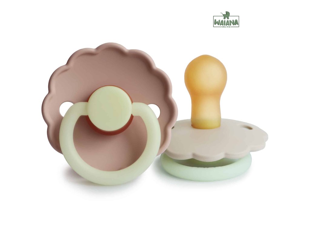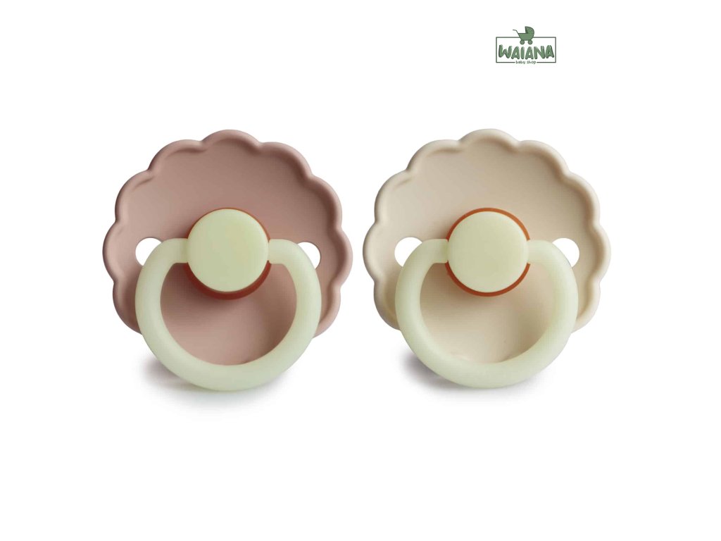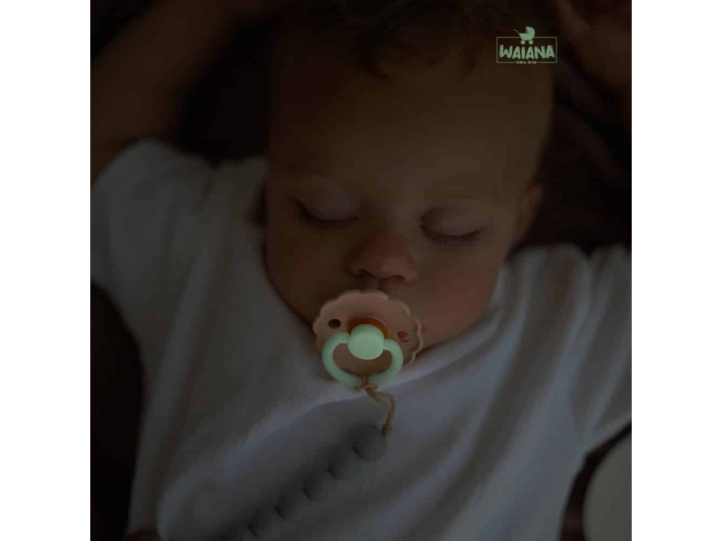 Dvojbalenie kaučukových cumlíkov, vhodných pre deti od 0-6 mesiacov, svietiacich v tme, so vzorom kvietka.