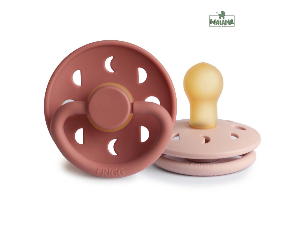 Dvojbalenie kaučukových cumlíkov, vhodných pre deti od 0-6 mesiacov, so vzorom mesiacov.