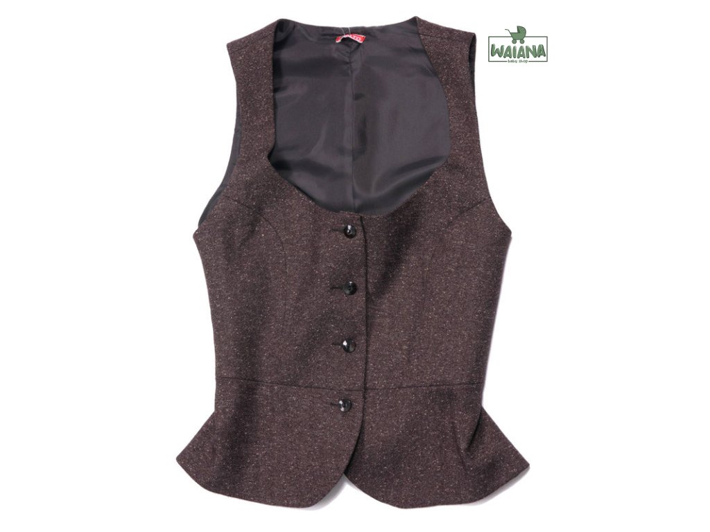Priliehavá vesta tvarujúca postavu pomocou princesových švov a členenia v páse. Je vyrobená z príjemného tvídového materiálu v zložení: 50 % viskóza, 47 % pes, 3 % spandex.