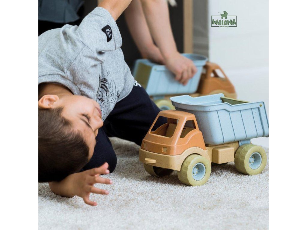 Veľké nákladné auto s množstvom priestoru pre piesok alebo iné veci, ktoré treba premiestniť. Má sklápací náves na vykládku. Ponúka bohaté možnosti pre rozvoj detskej fantázie, hranie rolí a zmyslové skúmanie prírody s pieskom a vodou. Hranie s týmto autíčkom posilňuje motorické zručnosti dieťaťa a koordináciu rúk a očí pri plnení a vyprázdňovaní návesu. V tlmených prírodných farbách. Má zaoblené tvary a je príjemný na dotyk. Je možné sa s ním hrať doma aj vonku.