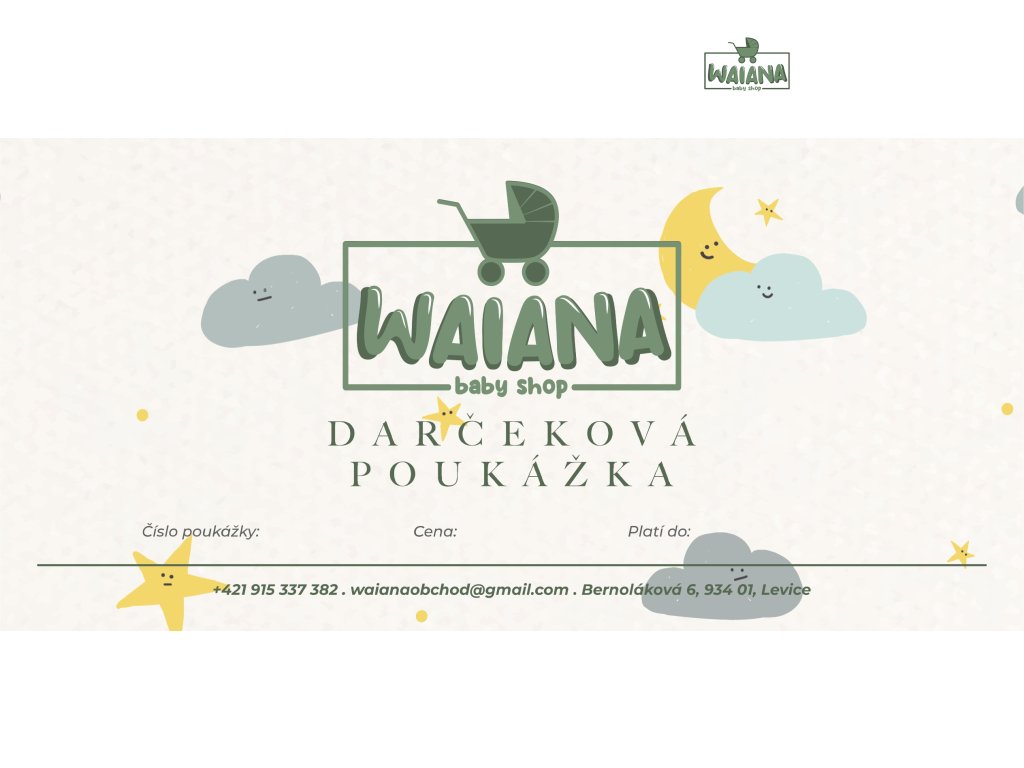 Uplatnenie poukazu je možné len pri online nákupe na adrese: https://www.waiana.sk/darcekovy-poukaz-platnost-6-mesiacov/. V predajniach je možné poukaz použiť taktiež.