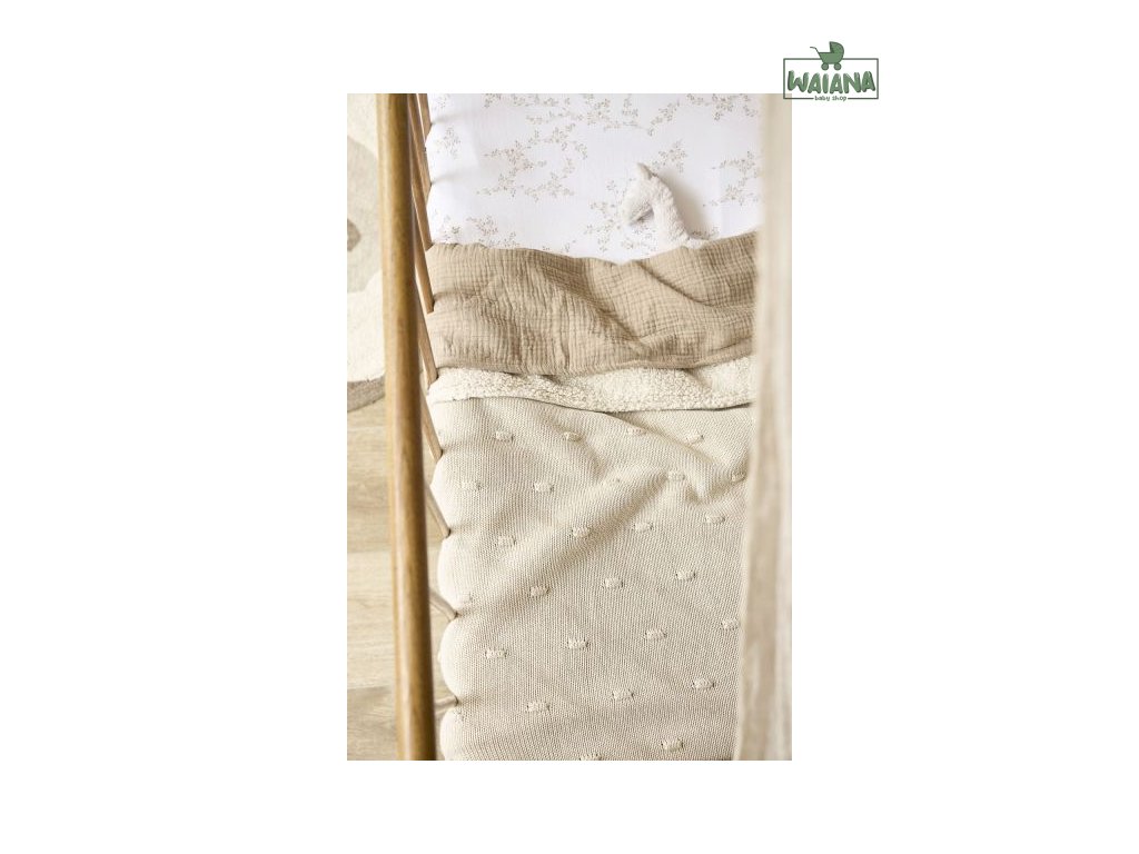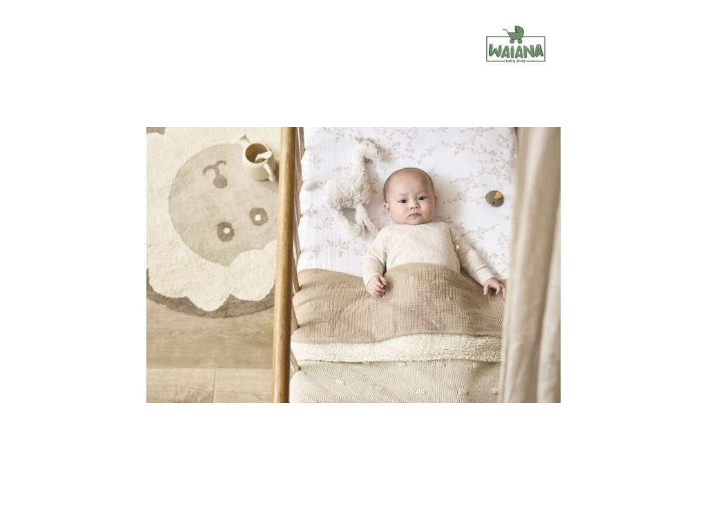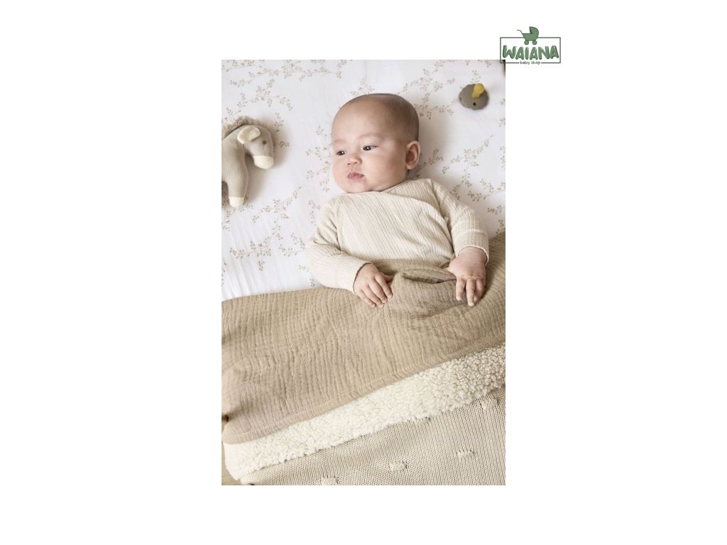 Kód: 1411166201 EAN: 4054703166217Deka je vyrobena ze 100% bavlny přední strana, měkká spodní strana ze 100% polyesteru. Díky přirozené barvě a struktuře bavlněných vláken má přikrývka hodnotu TOG 2,0. Čím vyšší hodnota TOG, tím teplejší.Rozměr: 75x100 cmLze prát na 40 stupňůVhodné pro sušení v sušičce při nízkých teplotách
