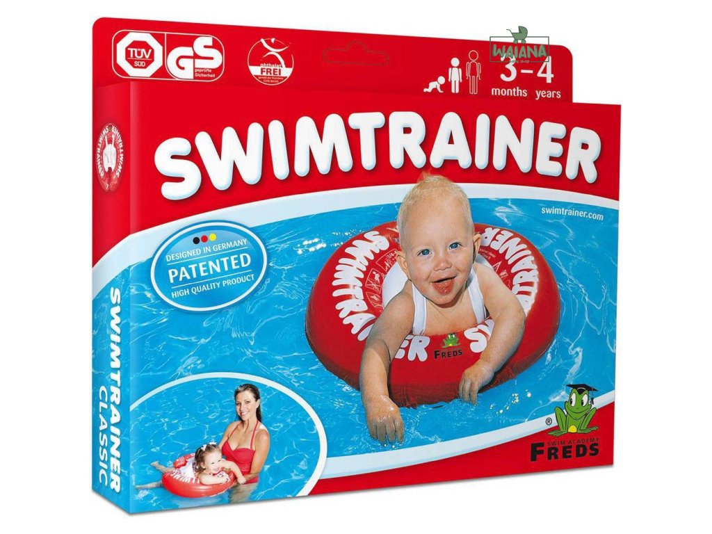 Swimtrainer Classic je nafukovacie koleso pre malé deti, ktoré ich bezpečným spôsobom udržuje v prirodzenej plaveckej polohe. Vďaka tomu majú deti voľný pohyb, jednoduchšie sa zoznámia s vodou a naučia používať nohy a ruky (tzv. žabí reflex).
