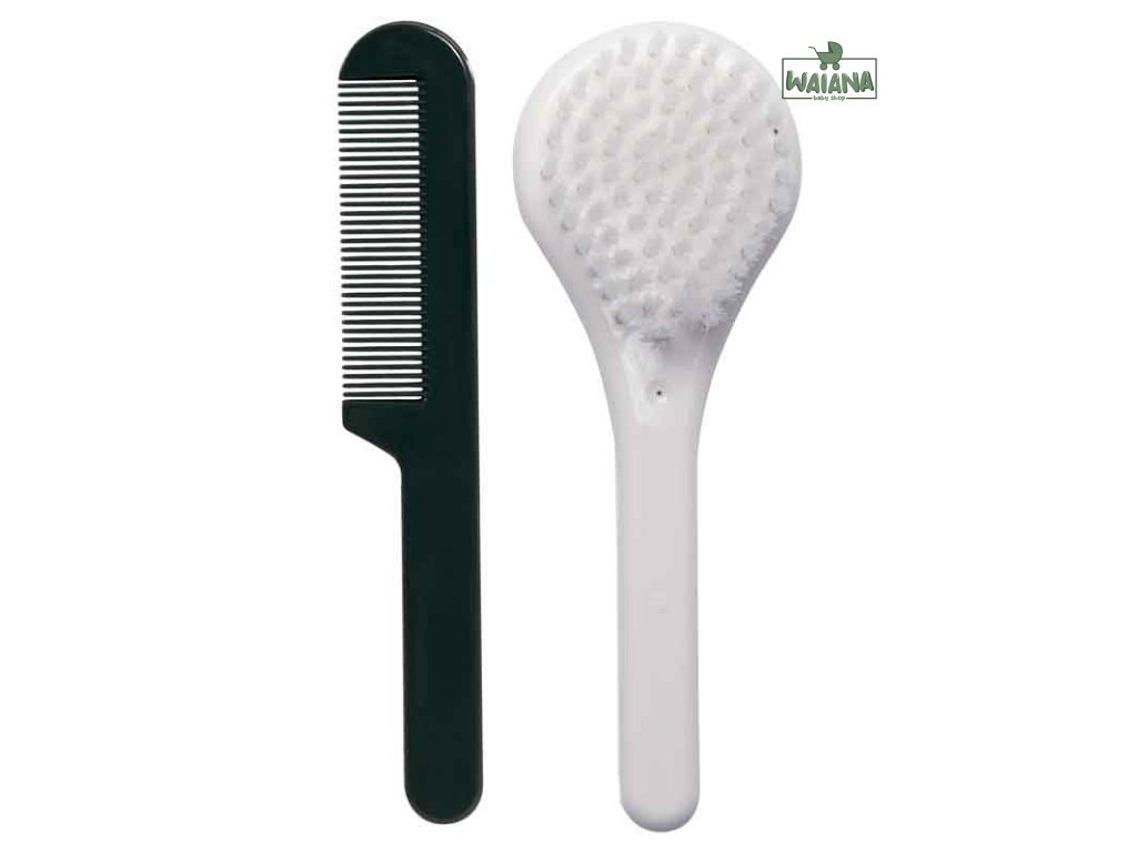 Rozmery: kefa - 14 × 2,5 × 5 cm/hrebeň - 14 × 2,5 × 0,5 cm