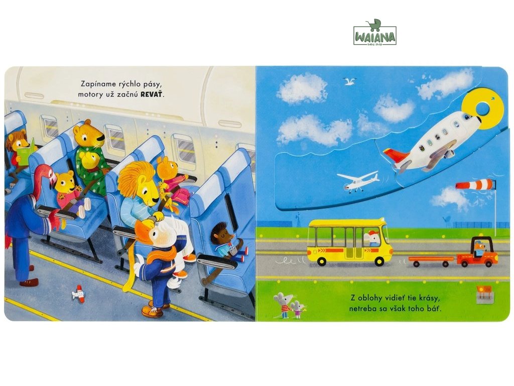 Dieťa sa vezie! LietadloVychutnaj si jazdu lietadlom. Leporelo s pohyblivými obrázkami na tlačenie, ťahanie a posúvanie.Nasadni do lietadla, vyrážame na cestu s levou rodinkou! Toto leporelo s pohyblivými obrázkami je ideálne na prvé čítanie, hranie a prezeranie s menšími deťmi.Pohybovanie časťami pomôže deťom rozvíjať jemnú motorikuVeršovaný text s ilustráciami zvieratiek zaujme a bude prirodzene rozvíjať ich rečové schopnosti.