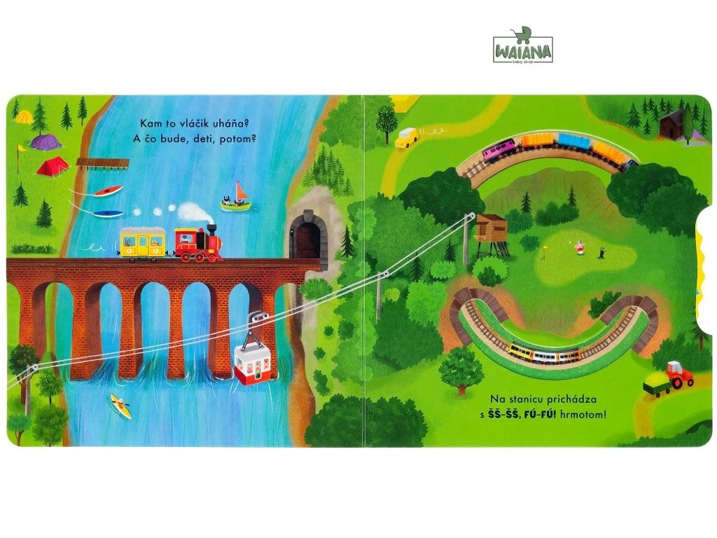Dieťa sa vezie! VlakVychutnaj si jazdu vlakom. Leporelo s pohyblivými obrázkami na tlačenie, ťahanie a posúvanie.Nasadni do vlaku, vyrážame na cestu! Toto leporelo s pohyblivými obrázkami je ideálne na prvé čítanie, hranie a prezeranie s menšími deťmi.Pohybovanie časťami pomôže deťom rozvíjať jemnú motorikuVeršovaný text s ilustráciami zvieratiek zaujme a bude prirodzene rozvíjať ich rečové schopnosti.