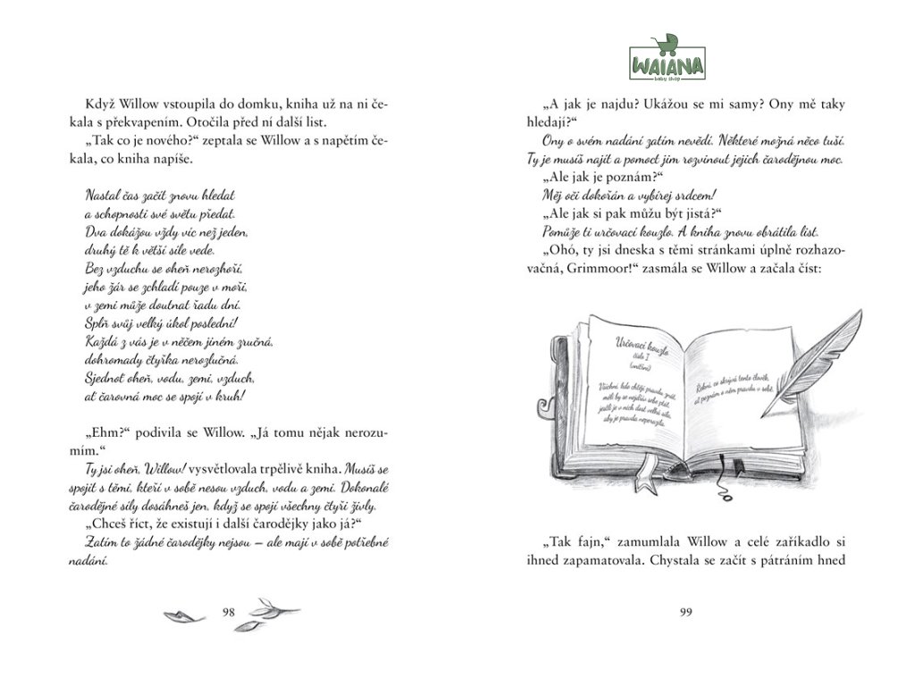 Dievča menom WillowMalá Willow sa jedného dňa dozvie, že jej teta zanechala zvláštne dedičstvo, svoju čarodejnú mocJedenásťročná Willow žije so svojím otcom. Po rokoch cestovania po celom svete sa vracajú na miesto, kde prežila prvé štyri roky života. Tam sa dozvie, že teta Alwina jej zanechala zvláštne dedičstvo – malý les so záhadným domčekom plným neobyčajných vecí. Zakrátko zistí, že Alwina nebola obyčajná teta. Bola to mocná čarodejnica, ktorá jej okrem tajuplného lesa odkázala niečo oveľa výnimočnejšie – svoju čarodejnú moc.Vydajte sa na dobrodružnú cestu plnú objavovania, hľadania spriaznených duší a záchrany lesa a jeho obyvateľovPo počiatočnom zdráhaní sa Willow rozhodne, že toto neobyčajné dedičstvo prijme, a jej život sa od základov zmení. Pomocou vševediacej čarodejníckej knihy a verného zvieracieho sprievodcu lišiaka Rufusa krok za krokom preniká do tajov mágie a sveta kúziel.Čaká ju však náročná úloha. Musí nájsť ďalšie tri dievčatá, ktoré majú podobný dar čarodejníctva a musí s nimi spojiť svoje magické schopnosti. Ak sa jej to nepodarí, jej čarovný les zmizne.Fantastický príbeh popretkávaný mágiou a kúzlami, ktorý učí, aké dôležité je ochraňovať prírodu a starať sa o ňu.