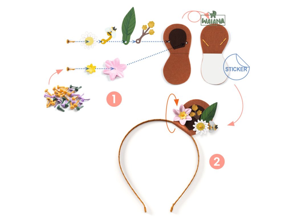 DIY Čelenky Kvetinoví priatelia Tvorte nádherné kvetinové čelenky DIY sada Čelenky – Kvetinoví priatelia prináša deťom nekonečnú dávku tvorivej radosti a umožňuje im navrhnúť si vlastné originálne kvetinové čelenky. Či už milujú jemné pastelové kombinácie, výrazné farby alebo romantický boho štýl, v tejto sade nájdu všetko, čo potrebujú na zhotovenie až troch jedinečných kvetinových čeleniek. Deti môžu ozdobovať pripravené „ušká“ rozmanitými papierovými kvietkami, drobnými dekoráciami a samolepiacimi filcovými kúskami, ktoré jednoducho pripevnia na mäkké stužkové čelenky – tie pohodlne sedia na každej veľkosti hlavy. Vďaka ľahkému a zrozumiteľnému návodu je tvorenie zábavné, intuitívne a vhodné aj pre úplných začiatočníkov.