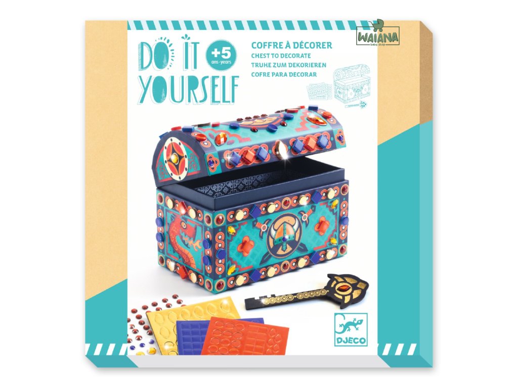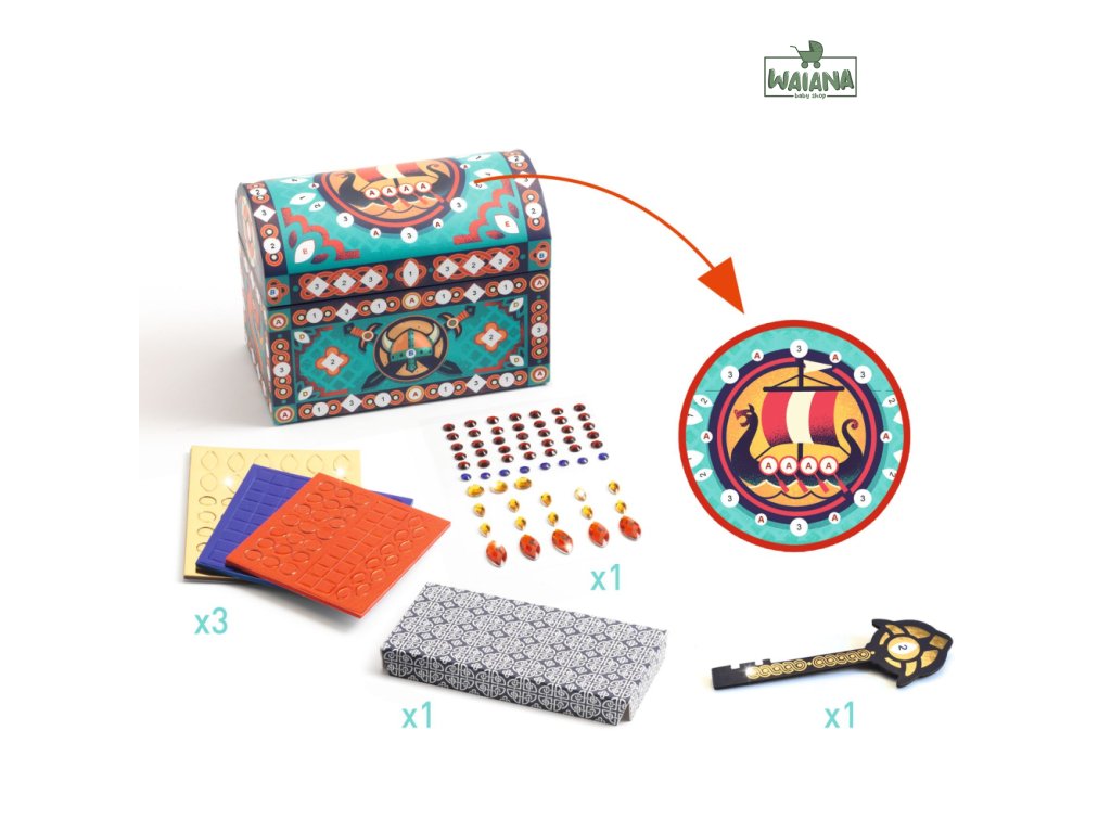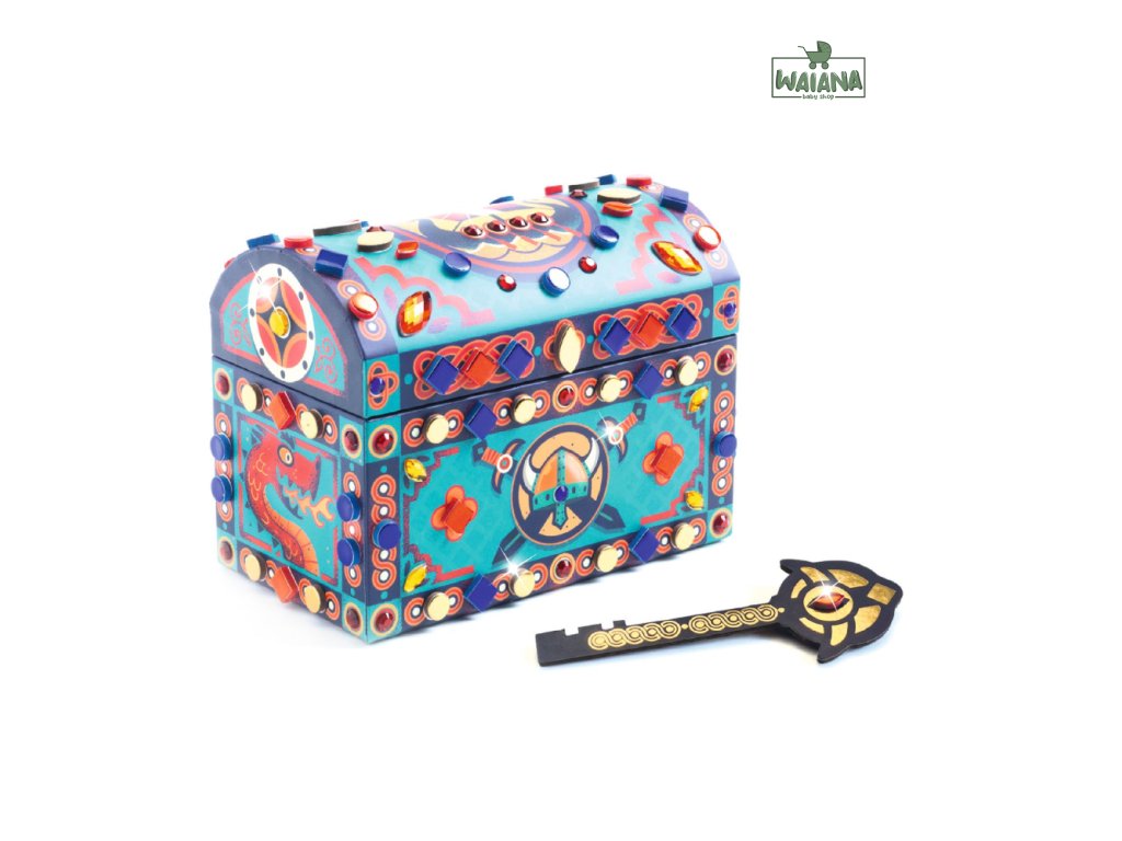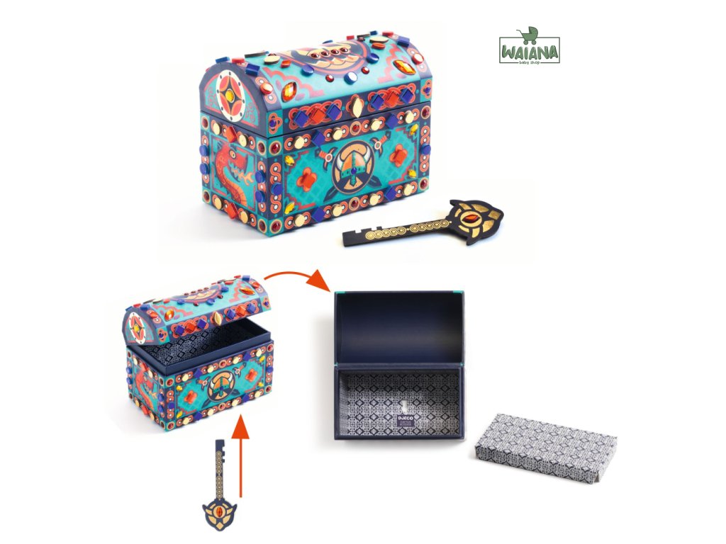 Vyrob si vlastnú pokladnicu plnú tajomstiev, lesku a dobrodružstva!S tvorivou sadou DIY Truhlica – Super poklad sa každé dieťa môže stať malým pirátom, objaviteľom či strážcom pokladov. Táto čarovne spracovaná sada umožňuje deťom vytvoriť si vlastnú drevenú pokladnicu, ktorú si vyzdobia podľa vlastnej fantázie. Po dokončení získajú nielen krásnu dekoráciu do izby, ale aj tajnú schránku, do ktorej môžu ukryť svoje najcennejšie drobnosti. Truhlica sa zdobí pomocou viac než 150 trblietavých mozaikových a „drahokamových“ nálepiek, ktoré jej dodajú vzhľad skutočného pokladu z rozprávky. Deti môžu kombinovať metalické farby, vytvárať vzory a dodať tak svojmu dielu jedinečný štýl. Každý kúsok nálepky sa ľahko aplikuje, takže tvorenie je jednoduché, čisté a mimoriadne zábavné. Najväčším prekvapením celej sady je tajné falošné dno, ukryté vo vnútri truhlice. Dá sa otvoriť špeciálnym malým kľúčom a je ideálnym miestom na odkladanie mincí, odznakov, náramkov, listov od kamarátov alebo akýchkoľvek malých tajomstiev, ktoré si dieťa chce uchovať len pre seba.