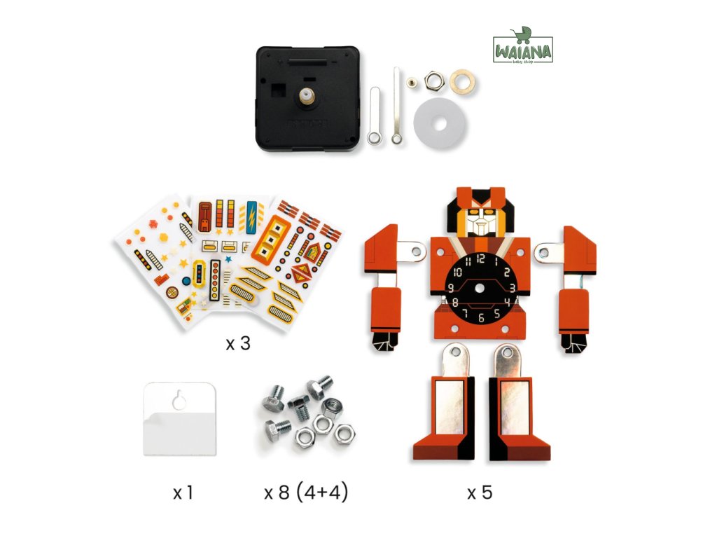 DIY Vyrob si sám Hodiny RobotZostav si robotické hodiny s mechanizmomDIY Vyrob si sám Hodiny Robot je dokonalá kreatívna sada pre deti, ktoré milujú tvorenie, skladačky a funkčné projekty. Deti si vlastnými rukami poskladajú funkčné nástenné hodiny v tvare robota – od spájania dielov skrutkami a maticami až po dekorovanie viac ako 80 obtlačkami/nálepkami. Sada obsahuje 5 pevných FSC® lepenkových častí, ktoré dieťa spojí pomocou skrutiek a dotvorí originálnymi obtlačkami. Špeciálna technika obtlačovania (šrafovanie ceruzkou cez fóliu) dodá dizajnu realistický metalický efekt. Po dokončení stačí vložiť tichý hodinový strojček (AA batéria nie je súčasťou balenia) a pridať ručičky. Kreatívny proces podporuje jemnú motoriku, sústredenie aj estetické cítenie. Kolekcia DIY – Vytvor si sám prináša deťom možnosť vytvoriť nielen dekoráciu, ale aj praktický predmet, na ktorý budú hrdé.Prečo si deti zamilujú Hodiny Robot?
