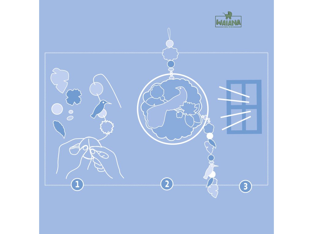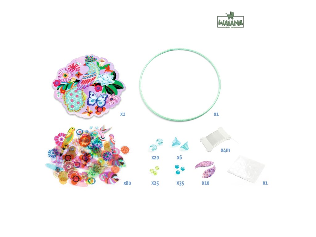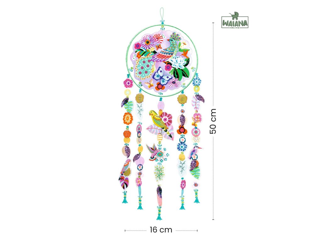 DIY Vyrob si sám Slnečný záves s vtáčikmi Slnečné odlesky v izbe: poskladaj jemný záves s vtáčikmi, korálkami a priesvitnými prvkami k oknuSlnečný záves s vtáčikmi je kreatívna sada, v ktorej si deti vytvoria poetickú dekoráciu na zavesenie k oknu.Na kovový kruh postupne pripevnia viac než 80 ozdobných dielikov, doplnia ich fazetovanými korálkami a flitrami a všetko zavesia na priesvitnú niť, aby záves pôsobil ľahko a vzdušne.Keď naň zasvieti slnko, priesvitné prvky a korálky vytvoria jemné odlesky – ideálne ako dekorácia do detskej izby, ktorá vyzerá krásne cez deň aj večer.Všetko je pripravené tak, aby deti mohli tvoriť krok za krokom podľa obrázkového návodu.Rýchly prehľad odporúčaný vek: od 7 rokov rozvíja: jemnú motoriku, trpezlivosť, sústredenie, cit pre estetiku v balení: kovový kruh 16 cm, priesvitná niť, 80+ dielikov, korálky a flitre, samolepiace bodky, návodPrečo si ho deti zamilujú vznikne skutočná dekorácia do izby – hotový výrobok sa dá hneď zavesiť kombinácia priesvitných prvkov a korálok vytvára slnečné odlesky tvorenie je prehľadné – dieťa vidí výsledok rásť po jednotlivých závesoch jemné navliekanie podporuje precíznosť a trpezlivosťAko to funguje Priprav si kruh a roztrieď dieliky podľa tvarov a farieb. Pomocou priehľadných samolepiacich bodiek pripevni ozdoby na určené miesta. Odmeraj a nastrihaj priesvitnú niť, navliekaj korálky a pridávaj ozdoby podľa návodu. Jednotlivé závesy uviaž na kruh tak, aby mali peknú dĺžku a rozostupy. Zaves hotový záves k oknu a nechaj ho chytať svetlo.Obsah balenia 1× kovový kruh (priemer 16 cm) 4 m priesvitnej nite 80+ ozdobných dielikov s motívmi vtáčikov a prírody 1× balenie korálikov a flitrov 1× hárok priehľadných samolepiacich bodiek 1× obrázkový návod krok za krokomTechnické parametre rozmer hotovej dekorácie: cca 16 × 50 cm materiál: kov, plastové/priesvitné prvky, niť rozmery balenia: cca 20 × 26 × 4,5 cm