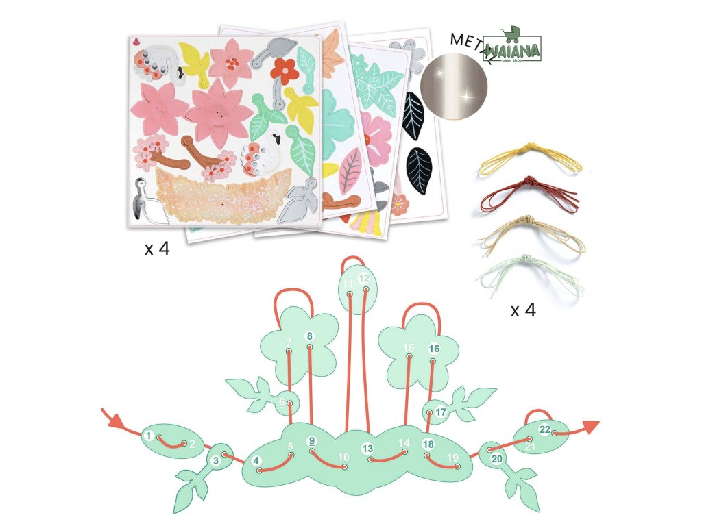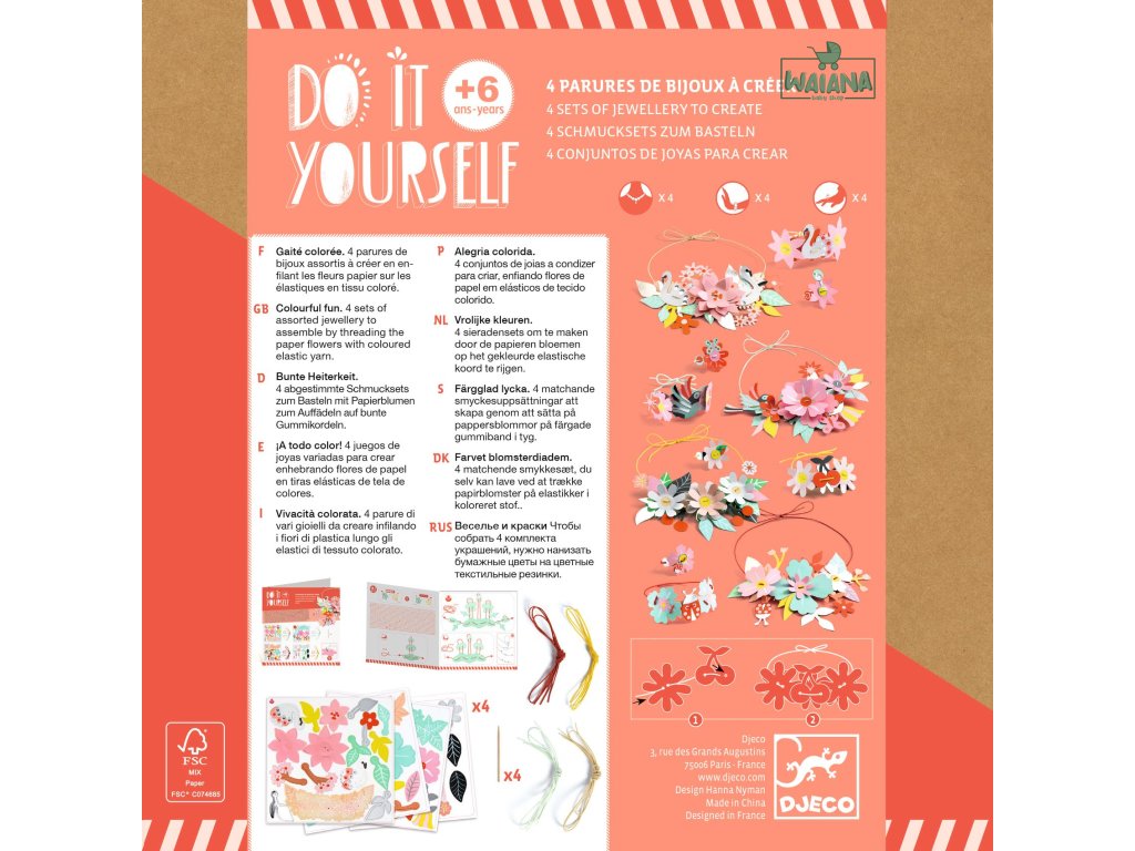 DIY Vyrob si sám Šperky Farebná zábava Vyrob si vlastné kvietkové šperky: navliekaj papierové „kvety“ podľa čísel a vzniknú 4 farebné setyDIY Vyrob si sám Farebná zábava je kreatívna sada na výrobu papierovej bižutérie v sviežom kvetinovom štýle.Deti si postupne poskladajú 4 ladiace sety šperkov – každý set obsahuje náhrdelník, náramok a prsteň.Papierové dieliky sú predierované a očíslované, takže dieťa len navlieka prvky v správnom poradí na elastické šnúrky.Keď je šperk hotový, číslovanie „zmizne“ a zostane len krásny, farebný výsledok s jemným leskom.Rýchly prehľad odporúčaný vek: od 6 rokov rozvíja: jemnú motoriku, sústredenie, trpezlivosť, cit pre farby v balení: 4 očíslované hárky s dielikmi, 12 elastických šnúrok, návodPrečo si ju deti zamilujú výsledok vyzerá „dospelácky“ – šperky sa dajú naozaj nosiť jednoduchý postup – navliekanie podľa čísel bez stresu ideálne aj na spoločné tvorenie – vzniknú 4 sety na zdieľanie trénuje presnosť a koordináciu – malé dieliky, veľký efektAko to funguje Vylúpni (oddeľ) potrebné papierové dieliky z hárkov. Vyber elastickú šnúrku a navliekaj dieliky podľa čísel v správnom poradí. Po navlečení šnúrku zaviaž a uprav dĺžku podľa potreby. Hotové šperky skombinuj do setu: náhrdelník + náramok + prsteň.Obsah balenia 4× hárok s predierovanými dielikmi (očíslené pre jednoduché skladanie) 12× elastická šnúrka 1× obrázkový návod krok za krokomTechnické parametre materiál: papier/kartón, elastická šnúrka počet setov: 4 (náhrdelník, náramok, prsteň) rozmery balenia: cca 20 × 20 × 3,5–4 cm