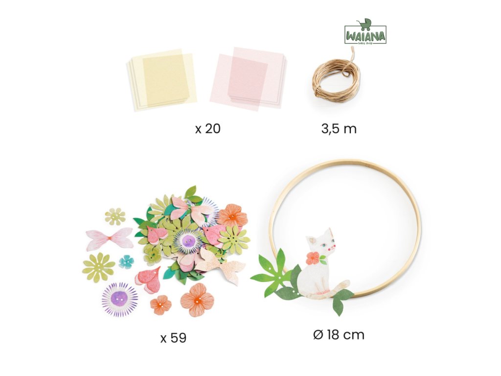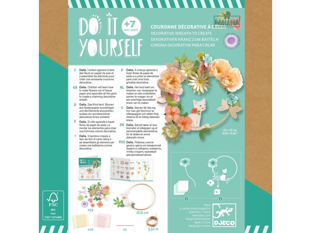DIY Vytvor si sám Kvetinový veniec DaliaDekorácia, ktorá rozžiari každý interiérObjavte čaro vlastnoručne vyrobenej dekorácie s touto nádhernou kreatívnou sadou na výrobu kvetinového venca Dalia. Je ako stvorená pre všetkých milovníkov tvorenia, nežných detailov a prírodného štýlu. Vďaka premyslenému obsahu si doma jednoducho vytvoríte elegantný veniec, ktorý sa stane jemným doplnkom vášho interiéru – či už ho zavesíte na dvere, stenu alebo položíte na poličku ako dizajnový akcent. V sade nájdete všetko, čo potrebujete: bambusový krúžok, kvalitný hodvábny papier v harmonických farbách, preddierované ilustrované šablóny kvetov a prírodnú rafiovú šnúru. Kombináciou týchto materiálov a jednoduchého postupu si krok za krokom vytvoríte jemné kvety, ktorých vrstvenie zabezpečí nádherný 3D efekt. Celý proces je zároveň relaxačný a intuitívny – ideálny pre začiatočníkov, ale aj pre tých, ktorí chcú rozvíjať svoje tvorivé zručnosti.Súčasťou balenia sú aj prehľadné pokyny doplnené kreatívnymi tipmi, ktoré vám ukážu, ako správne tvarovať papier, kombinovať farby a aranžovať kvety tak, aby váš výsledný veniec pôsobil profesionálne a harmonicky. Veľkým plusom tejto sady je aj jej ekologický charakter – bambusová konštrukcia, prírodné vlákna a kvalitné materiály šetrné k životnému prostrediu robia z venca nielen krásnu, ale aj zodpovednú dekoráciu. Hotový veniec Dalia bude pôsobiť moderne, jemne a prirodzene. Je dokonalý ako celoročná ozdoba, ale aj ako originálny handmade darček pre niekoho, kto ocení krásu ručnej práce.