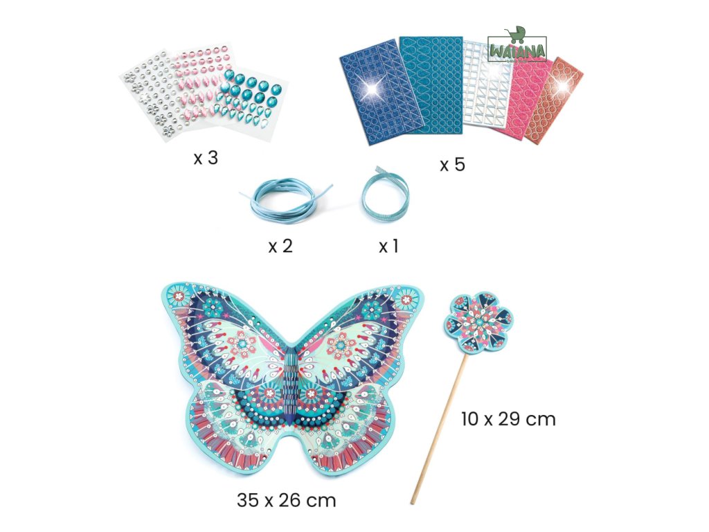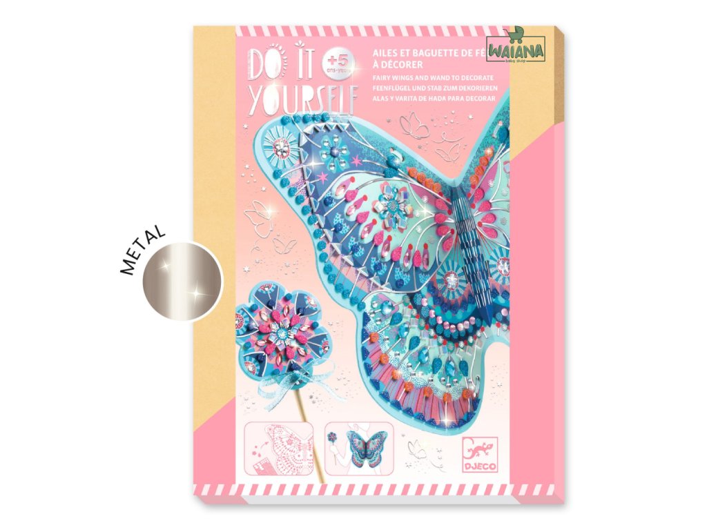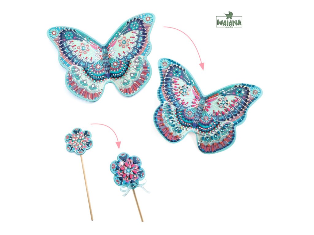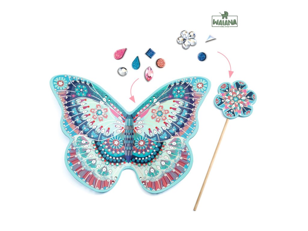 DIY Vytvor si sám vílie krídla a prútik na ozdobenie Vytvor si vlastné vílie krídla a prútik Vytvorte si vlastné vílie krídla a prútik s krásnou DIY sadou, ktorá deti prenesie do rozprávkového sveta plného trblietok a kúziel. Pomocou očíslovaných miest, trblietavých penových nálepiek a ligotavých kamienkov si deti ozdobia krídla aj prútik presne podľa predlohy – alebo podľa svojej fantázie.