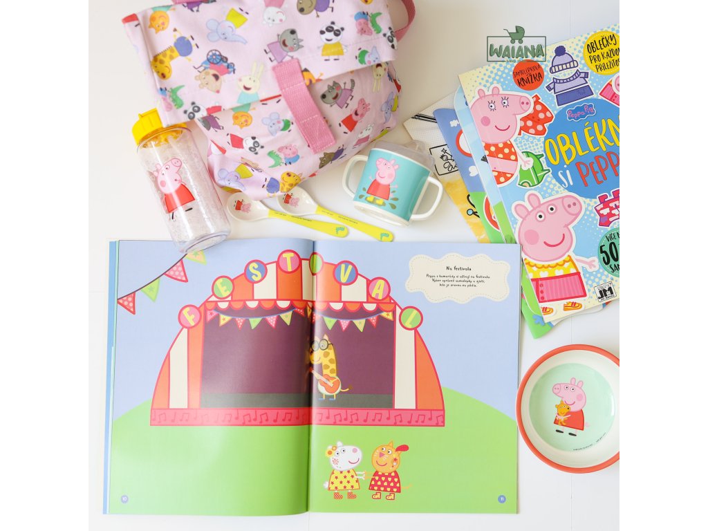 Dobrodružství s Peppou Samolepková knížkaZábava so samolepkami!Krásne ilustrovaná, samolepková knižka s prasiatkom Peppa Pig zaujme každé dieťa.Nálepkový zošit, ktorý rozvíja kreativitu!Obsahuje 24 strán a 8 strán so samolepkami k dolepeniu a ozdobeniu. Skrátka úžasný darček pre každého malého nezbedníka! Samolepkové knižky sú tiež ideálnou zábavou pre deti na cestách.