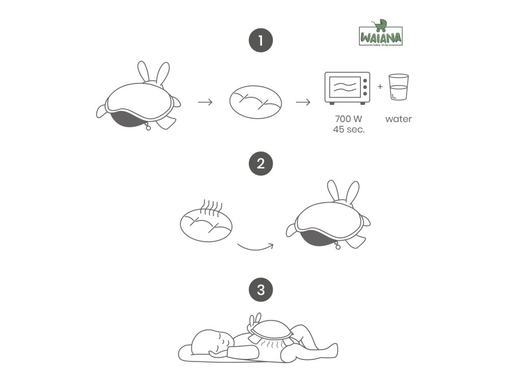 - pri umiestnení na bruško prirodzeným spôsobom poskytne úľavu pri nadúvanie a zmierni prejavy koliky