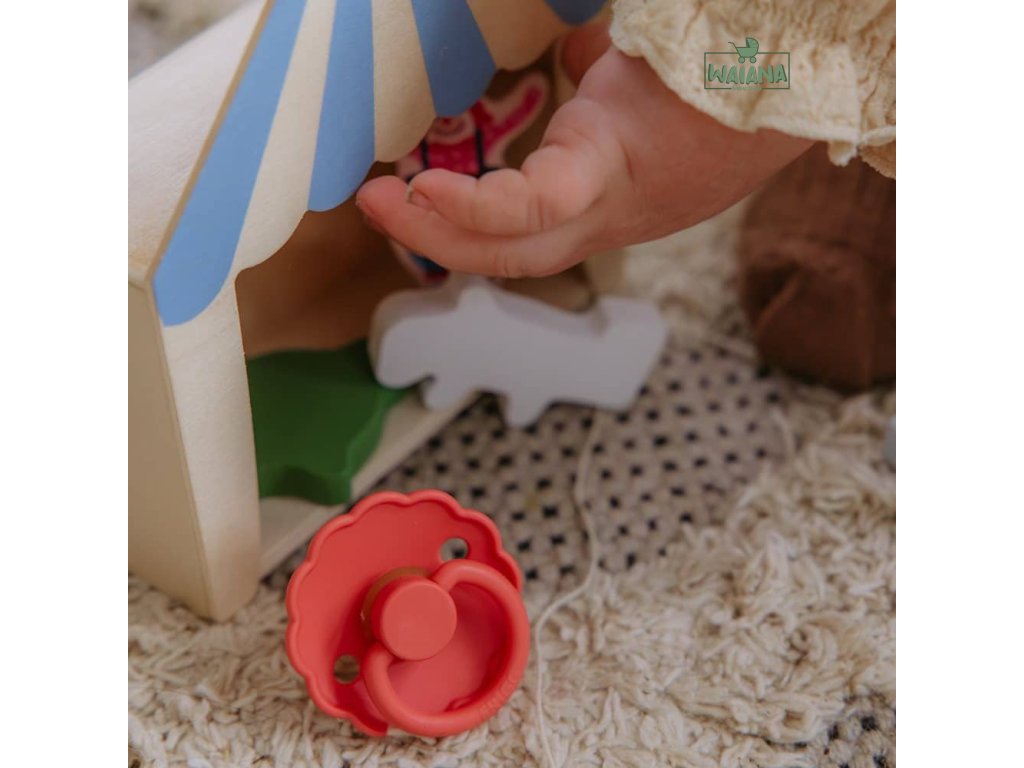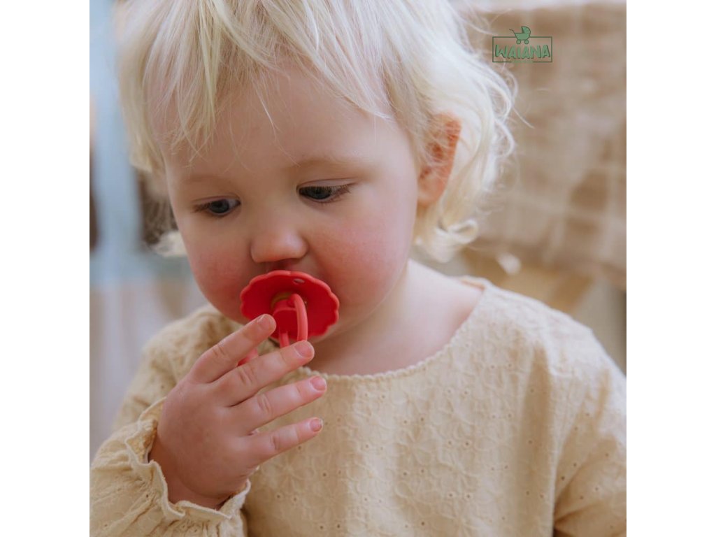Kvet maku s jemnými, papierovými okvetnými lístkami je inšpiráciou pre túto novú farbu FRIGG; krásny a výrazný červený odtieň. Vibrujúci kvet maku je podstatou očarujúcej krásy a cumlíku FRIGG Daisy prináša jedinečné čaro.