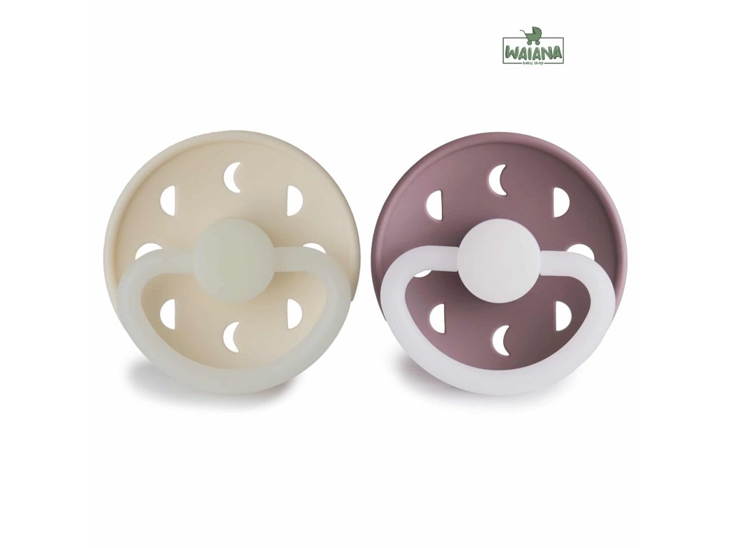 Dvojbalenie silikónových cumlíkov, vhodných pre deti od 0-6 mesiacov, svietiacich v tme, so vzorom mesiacov.