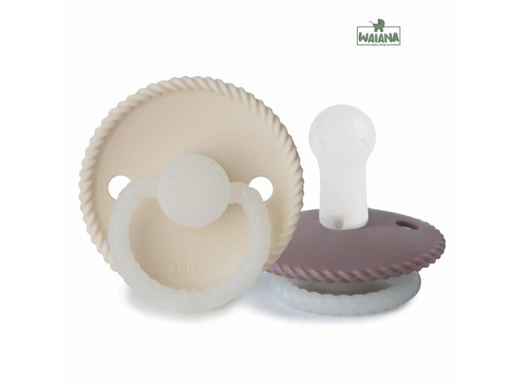 Dvojbalenie silikónových cumlíkov, vhodných pre deti od 6 mesiacov, svietiacich v tme, so vzorom lana.
