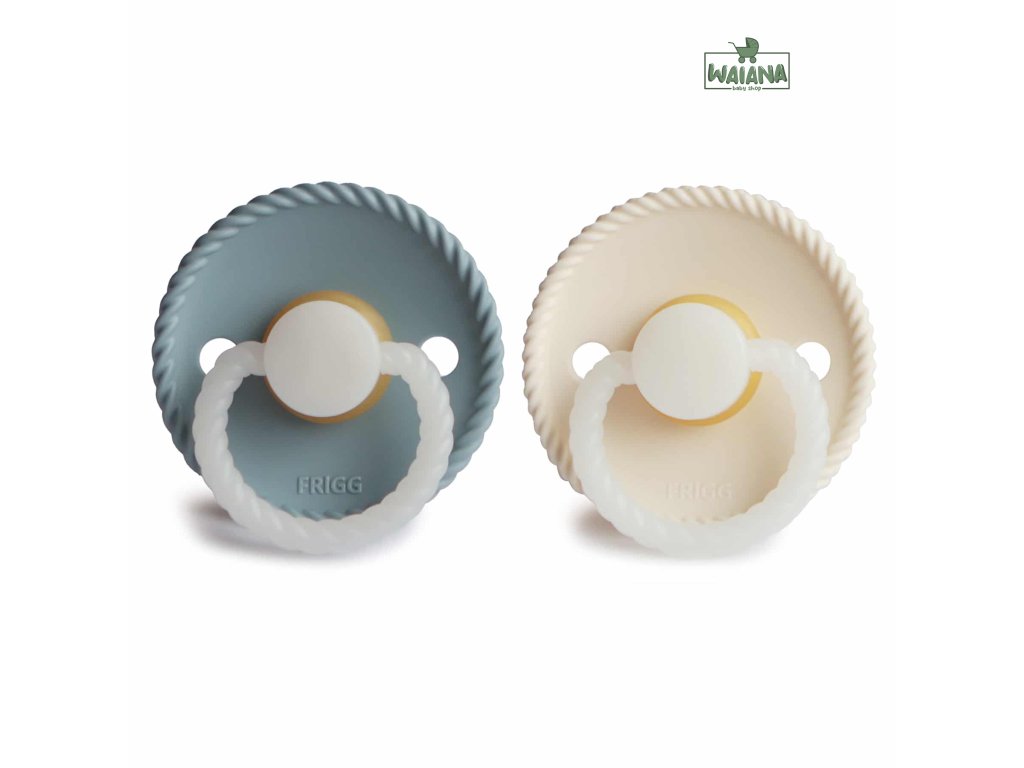 Dvojbalenie kaučukových cumlíkov, vhodných pre deti od 6 mesiacov, so vzorom lana, svietiacich v tme.
