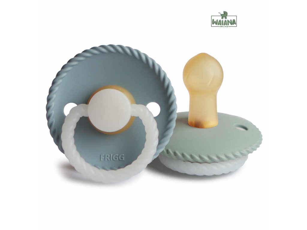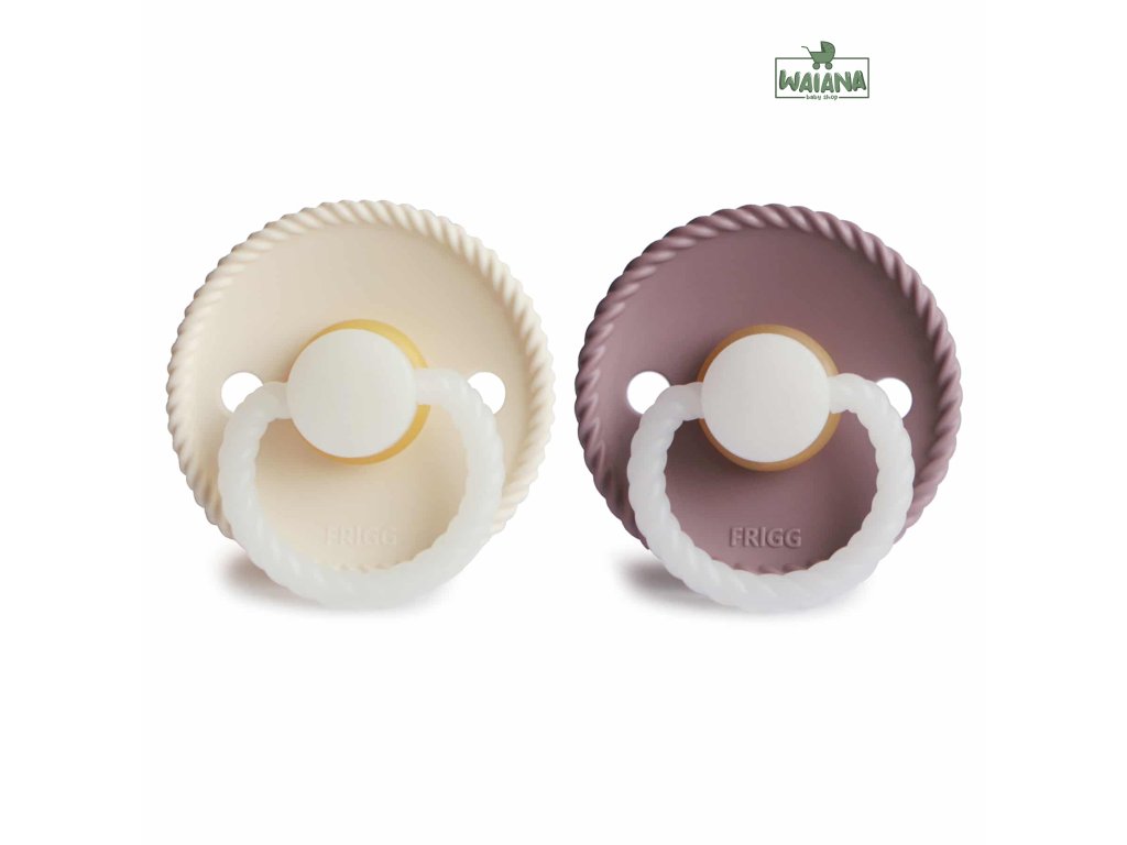 Dvojbalenie kaučukových cumlíkov, vhodných pre deti od 6 mesiacov, so vzorom lana, svietiacich v tme.