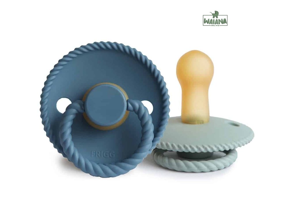 Dvojbalenie okrúhlych kaučukových cumlíkov, vhodné pre deti vo veku 6-18 mesiacov, so vzorom lana.
