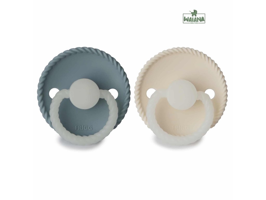 Dvojbalenie silikónových cumlíkov, vhodných pre deti od 6 mesiacov, svietiacich v tme, so vzorom lana.