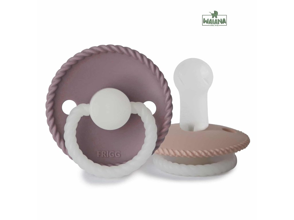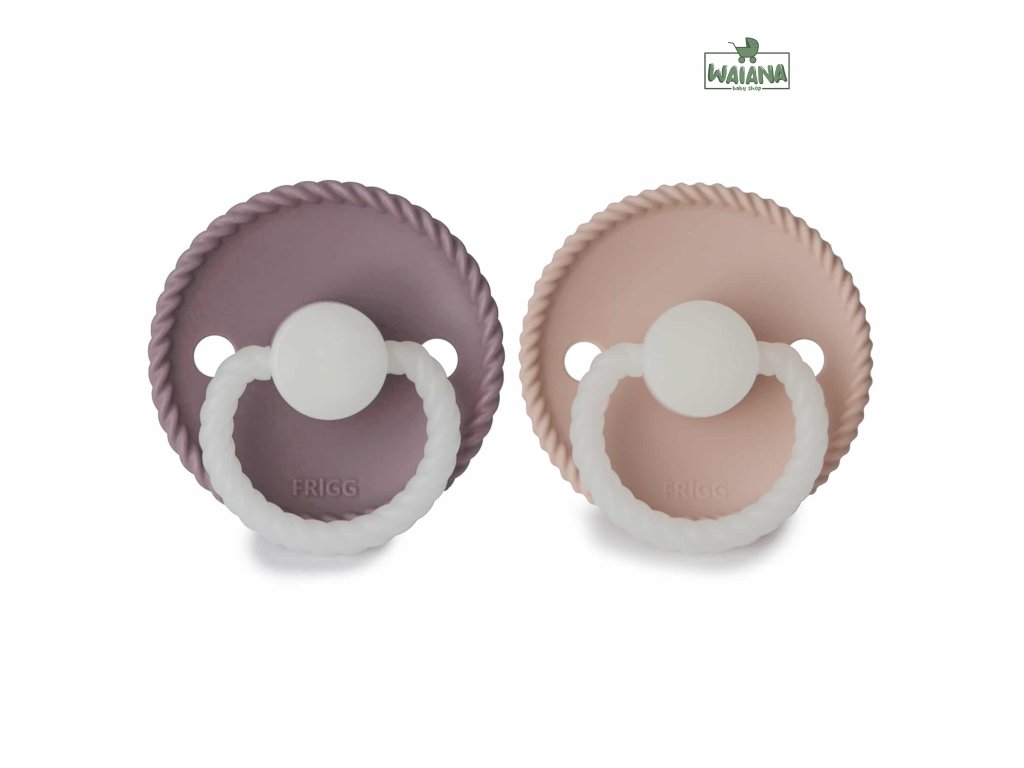 Dvojbalenie silikónových cumlíkov, vhodných pre deti od 0-6 mesiacov, svietiacich v tme, so vzorom lana.