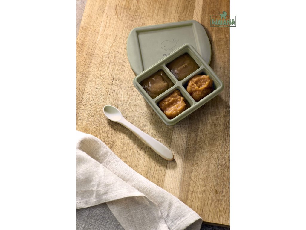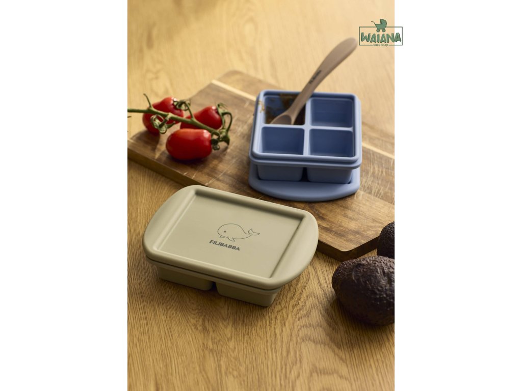 Každá miska má štyri priehradky s celkovým objemom 270 ml a je vybavená vzduchotesným vekom, ktoré udrží jedlo čerstvé. Vďaka pružnému silikónovému materiálu sa zmrazené porcie ľahko vyberajú, zatiaľ čo odolné prevedenie je ideálne na každodenné používanie. Vyrobené sú zo 100 % silikónu v potravinárskej kvalite s certifikátom LFGB. Misky sú bezpečné na používanie v mrazničke, mikrovlnnej rúre aj umývačke riadu (pred ohrevom alebo umývaním treba odstrániť veko).