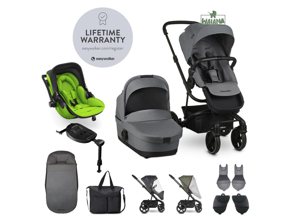 EASYWALKER Set 4XL Kočík kombinovaný Harvey3 Fossil Grey/Spring Green s príslušenstvom