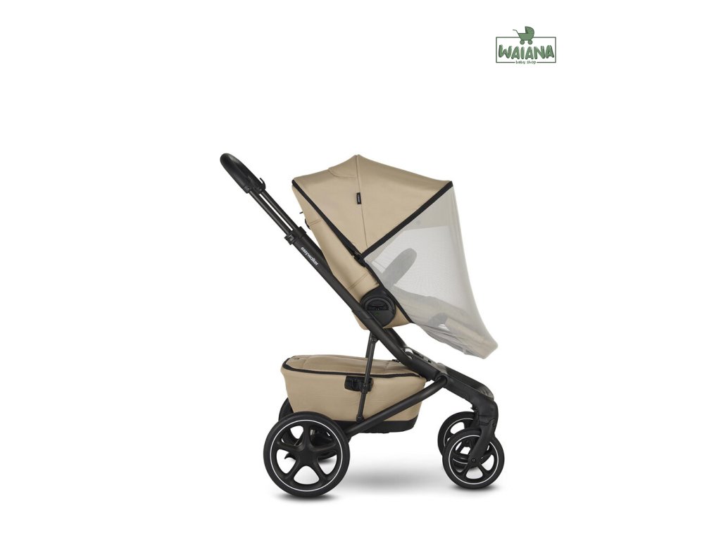 - extra veľká strieška so sieťkou (UPF 50) a slnečnou clonou a vetraním pre všetky poveternostné podmienky