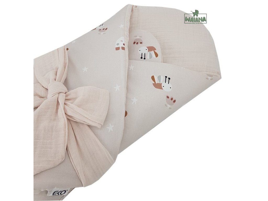 EKO Zavinovačka mušelínová s kokosovou vyberateľnou vložkou Bees Muselin Beige 75x75 cm