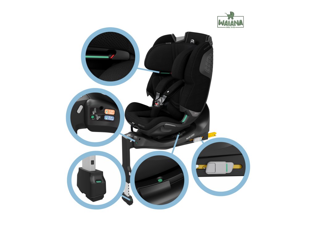- bezpečnostný zámok rotácie poskytuje istotu, že autosedačka s dieťaťom bude v idúcom aute vždy v správnej polohe pre jeho maximálnu bezpečnosť
