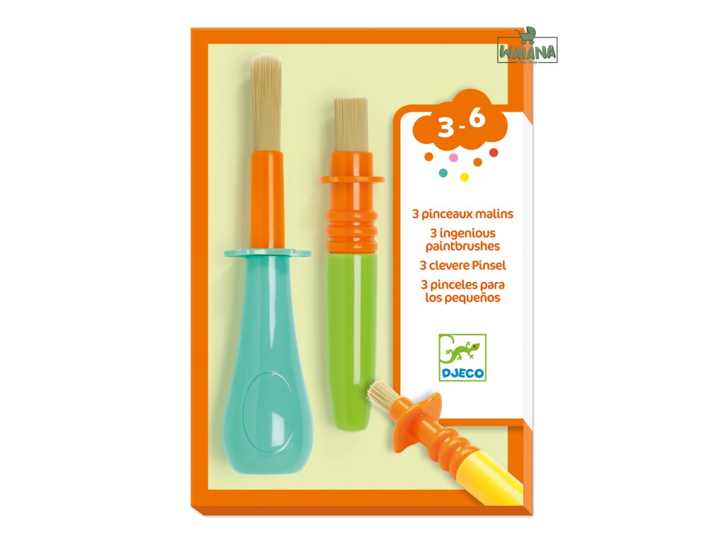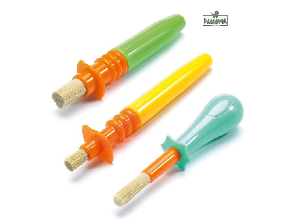 Ergonomické štetce S týmito štetcami si nezafarbíte prsty. Ako maľovať vodovými alebo temperovými farbami a nezafarbiť si pritom prsty? Šikovným riešením sú štetce so špeciálne upravenou rukoväťou.Špeciálne upravená rukoväť. Rúčka je pod štetinami rozšírená, čím bráni priamemu kontaktu prstov s farbou. Sada obsahuje 3 rôzne štetce.