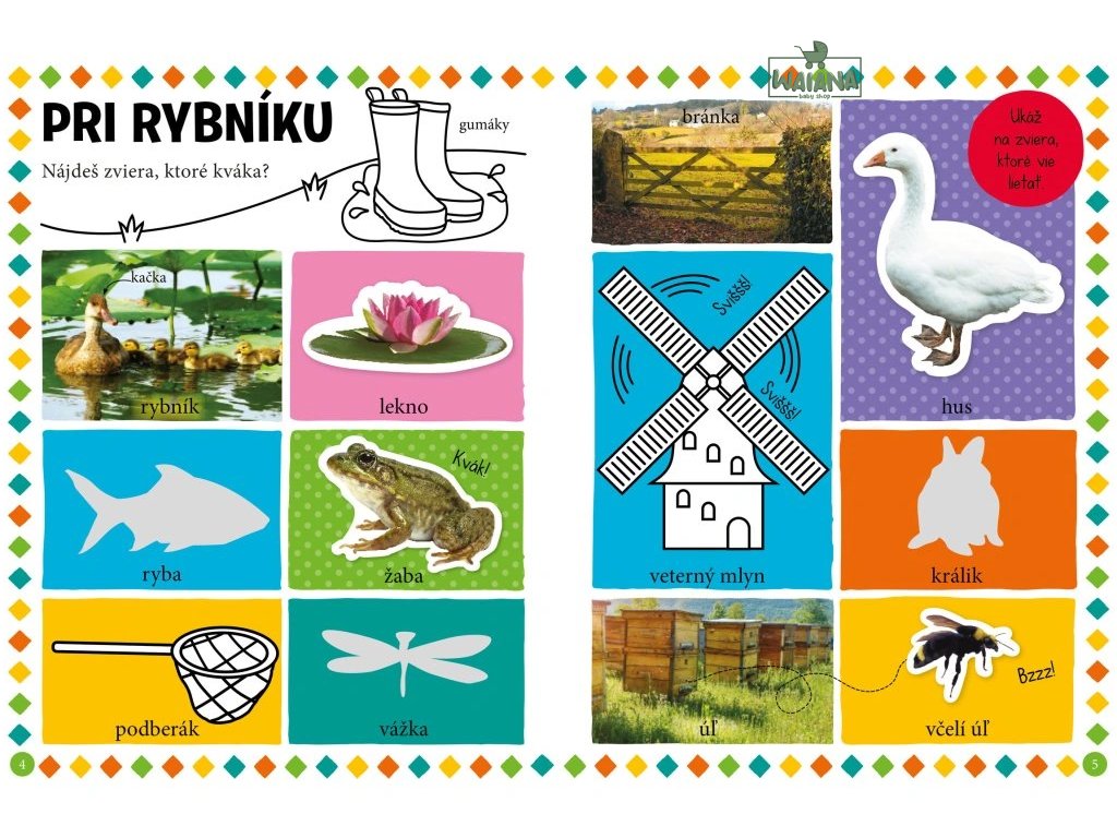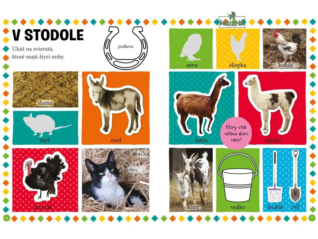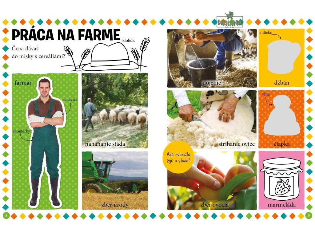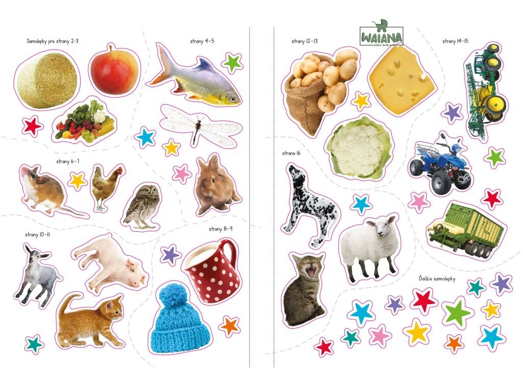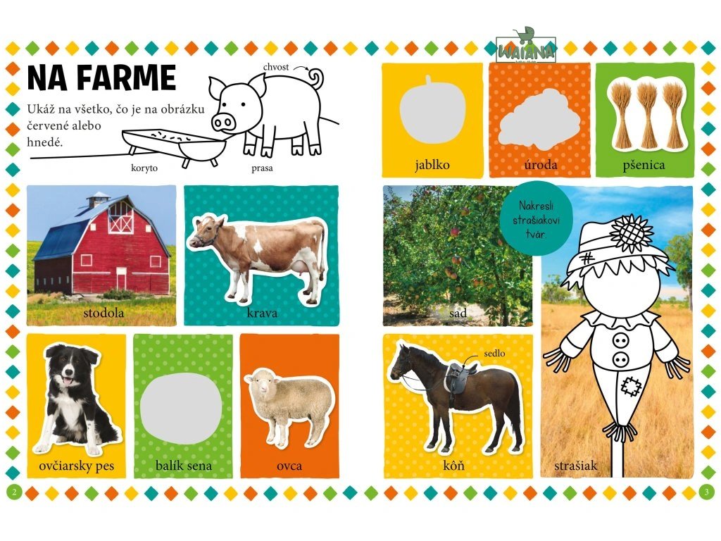 Farma 100 slovSpoznaj hospodárske zvieratá z farmy v tejto úchvatnej knižke aktivítVýrazné obrázky a fotografie zvierat a predmetov z farmy vo farebných rámčekoch s popismi predstavia deťom 100 prvých slov z tohto prostredia. Kniha pomáha rozvíjať slovnú zásobu, zlepšuje koordináciu oka a rukyPri vyfarbovaní obrázkov a lepení samolepiek sa dieťa hravou a interaktívnou formou zoznámi so zvieratami, plodinami a strojmi a naučí sa niečo nové. Vyfarbuj obrázky a na vynechané miesta nalepuj samolepky zo samolepkového hárka.