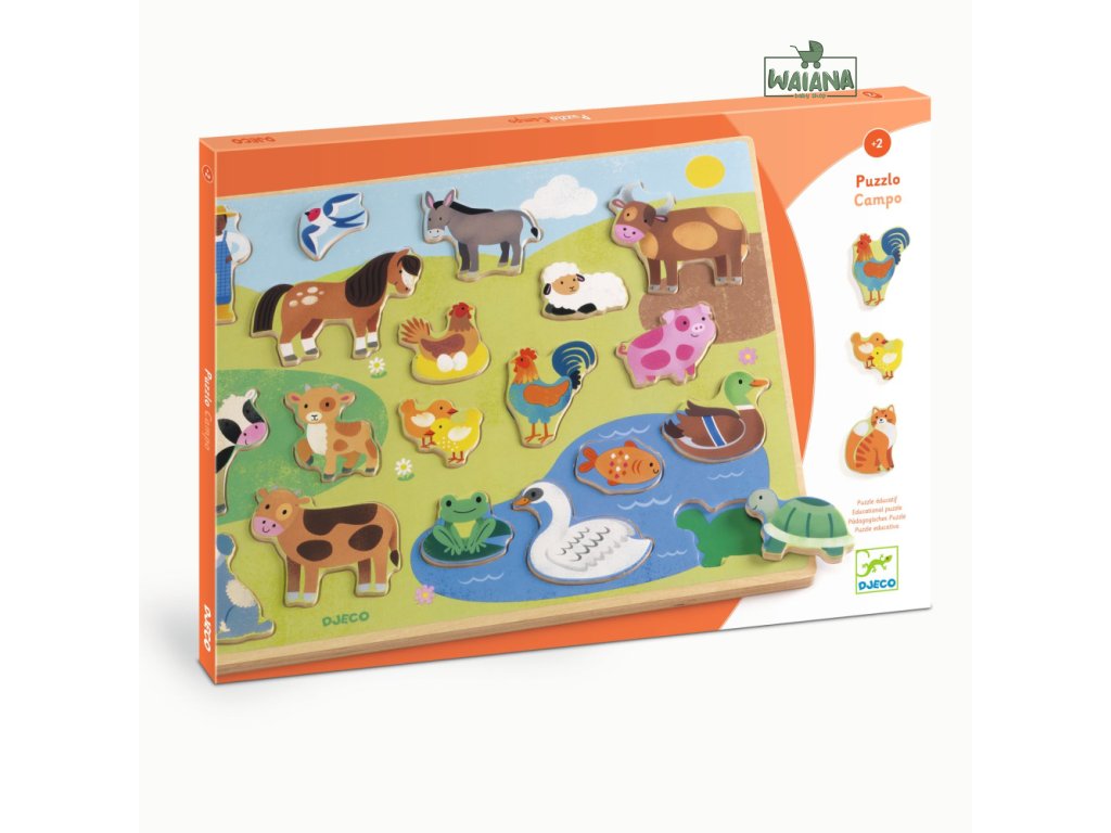 Farmárske zvieratká: drevené edukačné puzzleVzdelávacia drevená puzzle hra s motívom zvieratiekFarmárske zvieratká – drevené edukačné puzzle je farebná a odolná drevená skladacia hračka, ktorá deťom pomáha spoznávať rôzne zvieratá z farmy. Vkladanie veľkých drevených dielikov do správnych otvorov učí dieťa rozpoznávať tvary, farby a zvieracie motívy.Prečo si vybrať puzzle od Djecovhodné pre deti od 2 rokovveľké drevené dieliky pre jednoduché držaniemotivujúci farmársky motív so zvieratkamirozvíja jemnú motoriku a koordináciu ruka–okopodporuje rozpoznávanie tvarov, farieb a zvieratideálne na hranie doma aj v škôlkeČo si dieťa hrou rozvíjajemnú motoriku pri manipulácii s dielikmikoordináciu ruka–okopozorovanie tvarovschopnosť rozoznávať rôzne zvieratáObsah balenia22 drevených puzzle dielikov s motívmi farmárskych zvieratdrevená doska s tvarovými otvormi na skladanie
