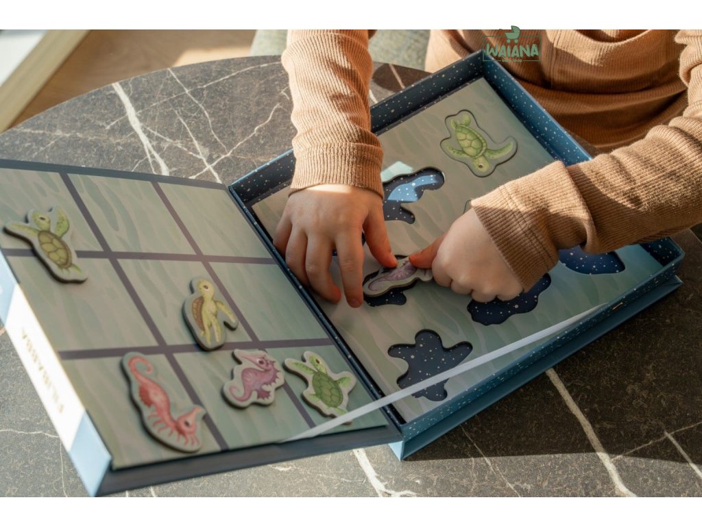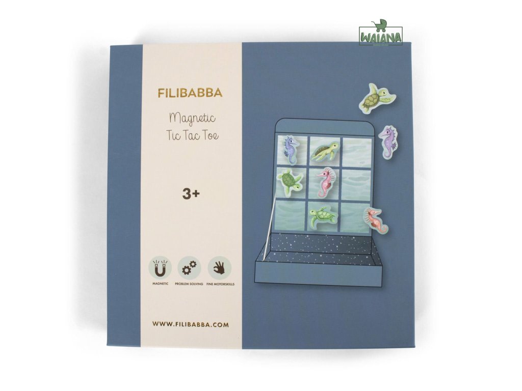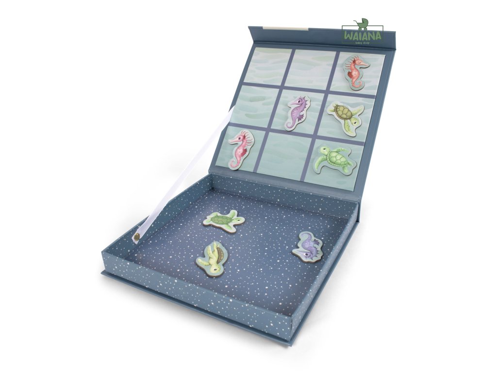 Kto by nemal rád hru Tic Tac Toe. Nadčasová taktická hra pre deti a dospelých ponúka skvelú zábavu doma aj na cestách. A vďaka peknej krabici s pripojenou magnetickou hracou doskou zostanú všetky komponenty na svojom mieste. Praktická magnetická hra s farebnými, ručne kreslenými korytnačkami a morskými koníkami ponúka zábavu bez obrazovky po náročnom dni. Táto hra je vhodná od troch rokov a zamiluje si ju celá rodina. Vyrobené z papiera a magnetu.