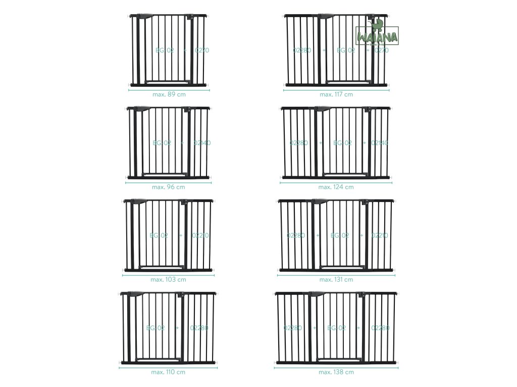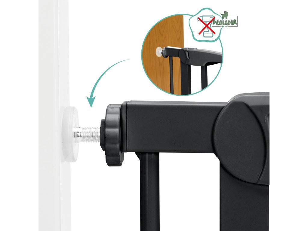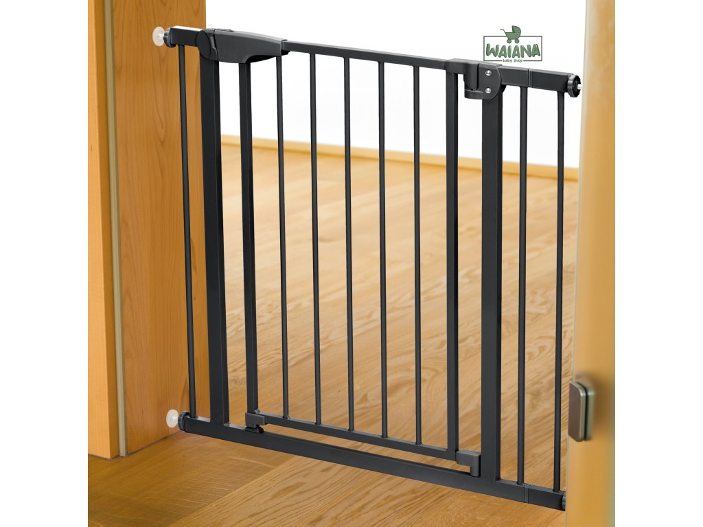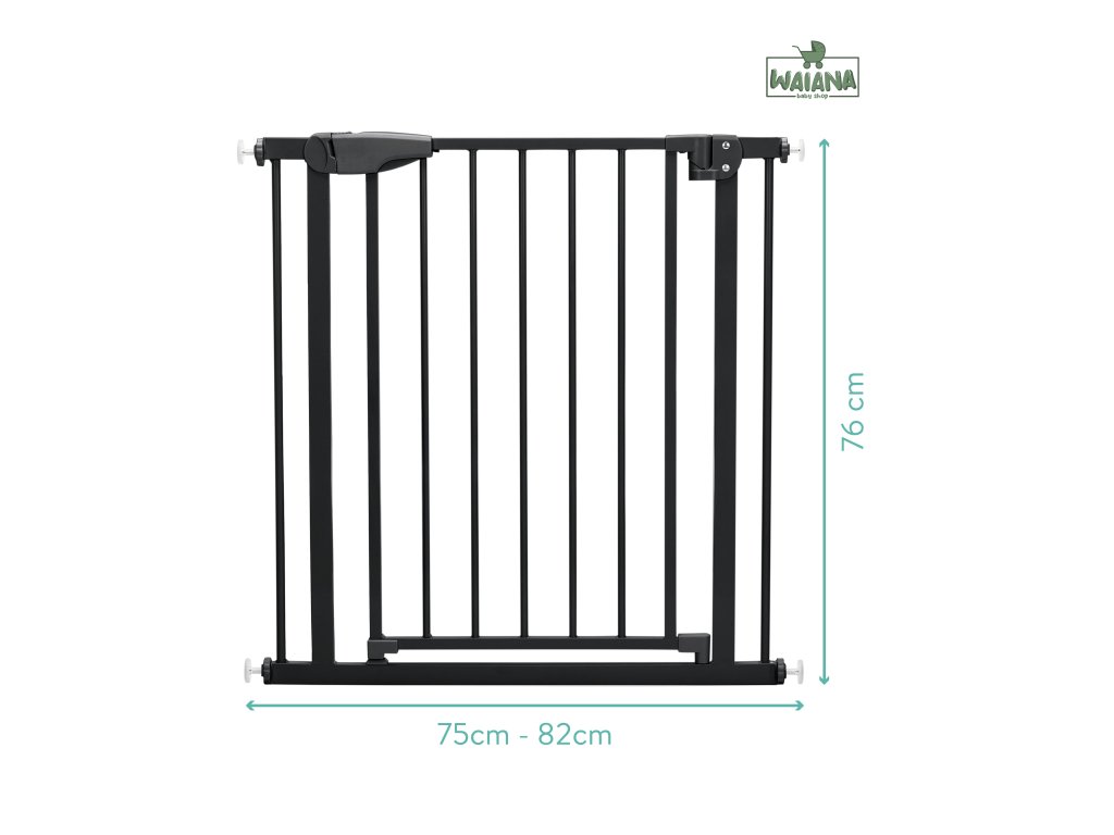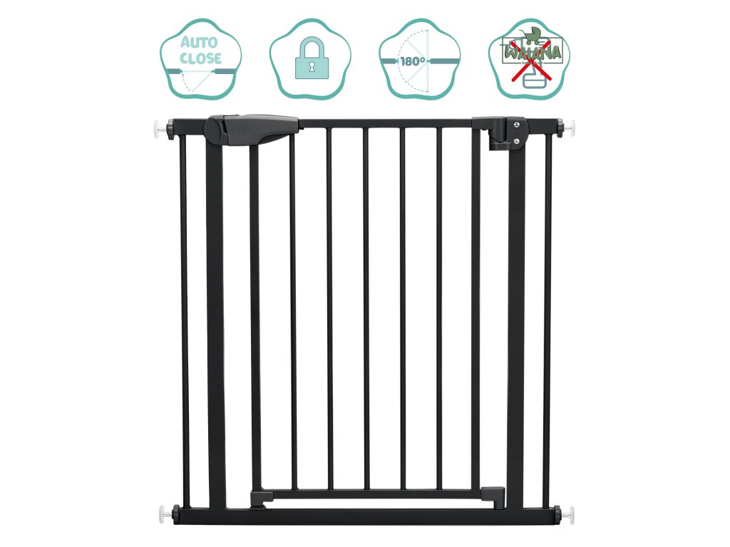 Zábrana je vyrobena z kvalitního kovu, je 76 cm vysoká a padne do standardních dveřních otvorů o šířce 75–82 cm. Díky promyšlené funkci automatického zavírání se branka po průchodu automaticky a bezpečně zavře – ideální, když máte plné ruce nebo spěcháte. Už žádné obavy, zda jste ji správně zavřeli.