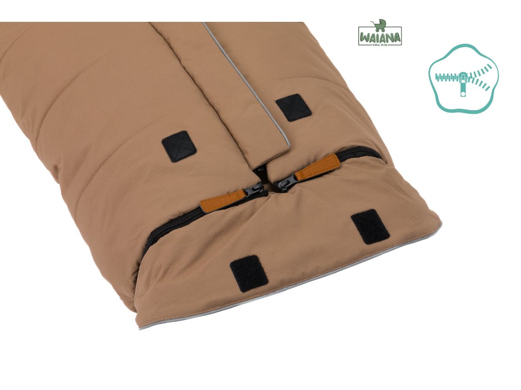 Snadno přístupný zip umožňuje jednoduché nastupování a vystupování z fusaku v kočárku nebo autosedačce.