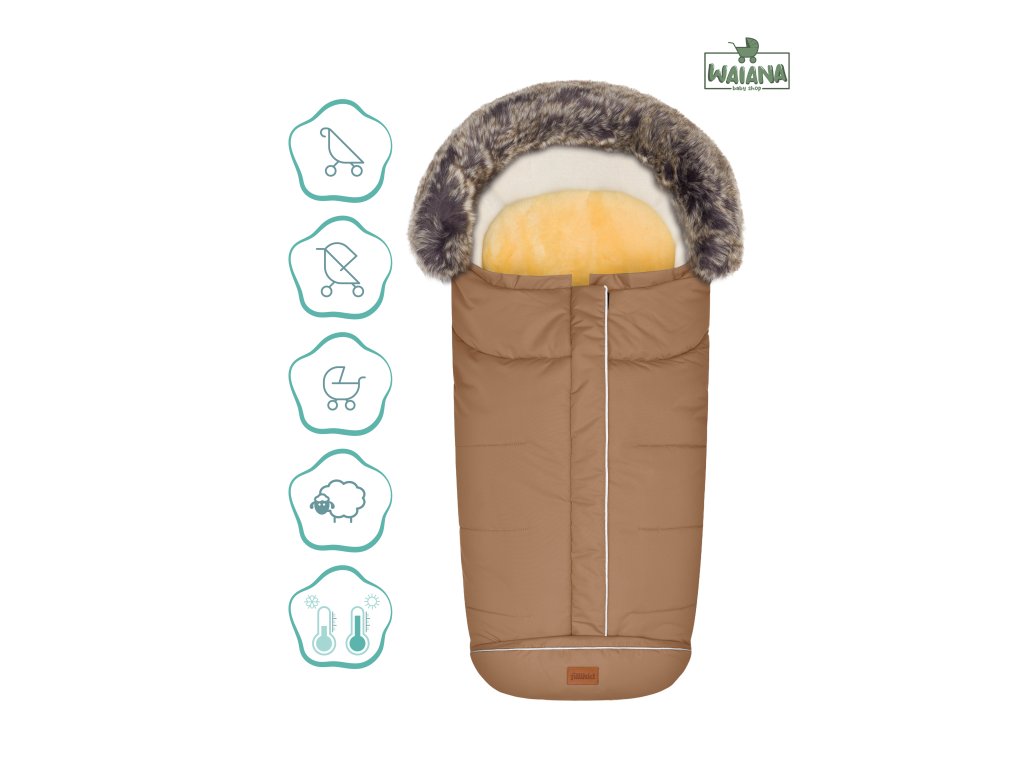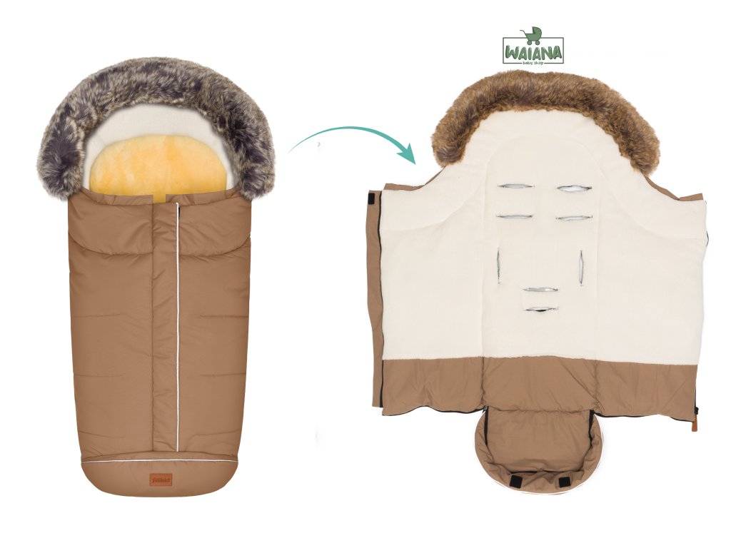 Fusak můžete používat jak s jehněčí vložkou pro větší teplo nebo bez jehněčí vložky při mírnějších teplotách, nebo dokonce samotnou vložku z jehněčí kožešiny, která poskytne vašemu dítěti útulné hnízdečko.