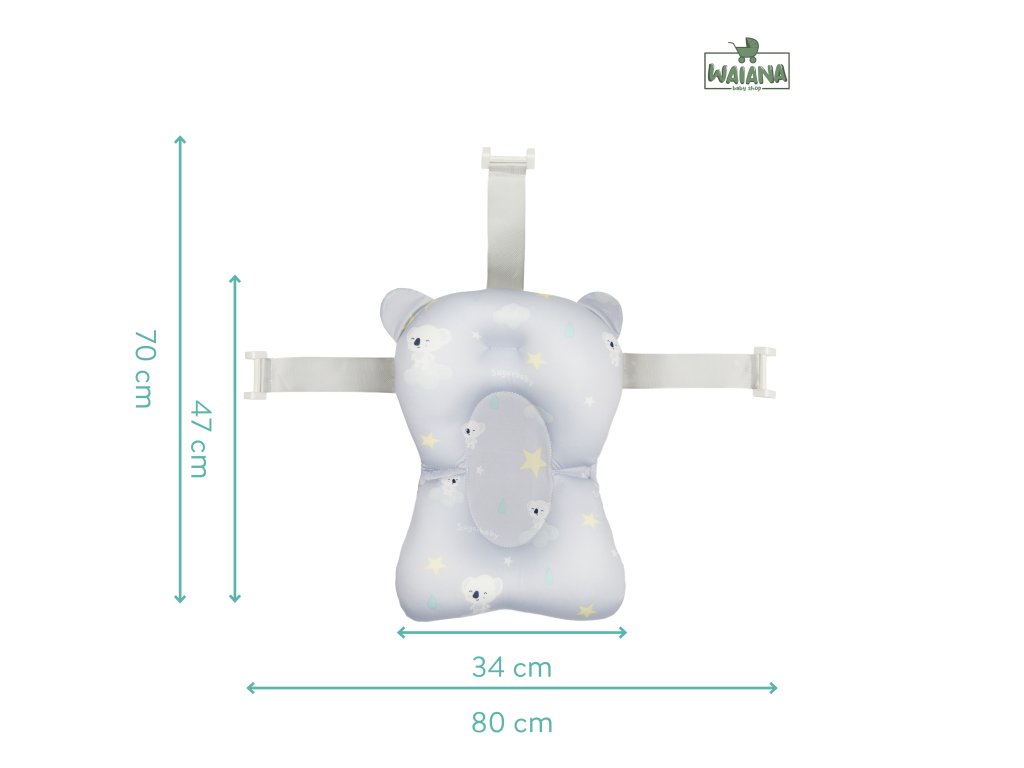 Měkké lehátko do vany bylo speciálně navrženo tak, aby poskytlo vašemu miminku maximální pohodlí a bezpečí při koupání. Jemně obepíná tělo novorozence a zároveň optimálně podpírá hlavičku, krk i záda. Integrovaný klín pod hlavičkou ji lehce nadzvedne, takže se voda nedostane do úst, nosu, očí ani uší.