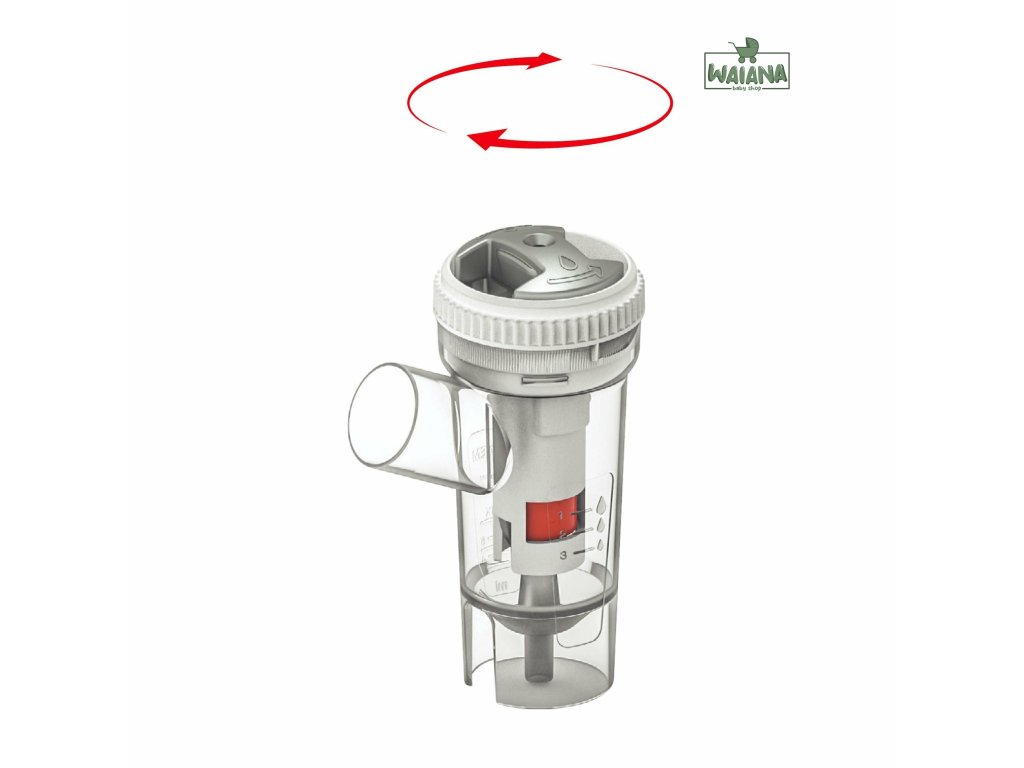 Nebulizér vám umožňuje ľahko meniť veľkosť častíc otáčaním krytu RF9.4 režimy prevádzky nebulizácie:-častice väčšie ako 7 µm (nebulizér v polohe 0) pre horné dýchacie cesty, vysoká rýchlosť nebulizácie-častice väčšie ako 5 µm (nebulizér v polohe 1) na ošetrenie tracheobronchiálnej oblasti-častice medzi 3 a 4 µm (nebulizér v polohe 2) na bronchiálne ošetrenie -častice medzi 2 a 3 µm (nebulizér v polohe 3), liek dosiahne alveoly. Optimalizované dodávanie liečiva a znížená disperzia v inovatívnom 4Neb inhalátore - ventilový systém optimalizuje dodávanie lieku pacientovi a obmedzuje jeho rozptyl. Jednoduchá údržba, antialergický materiál.