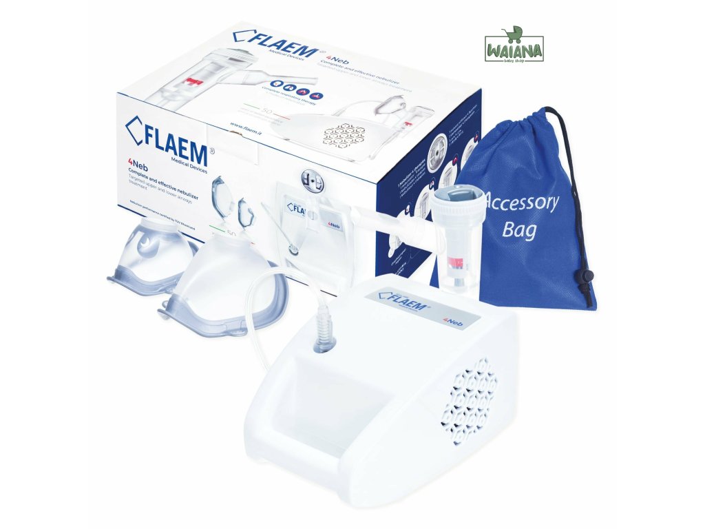 Rozprašovač sa ľahko čistí, všetky komponenty sa dajú rozobrať a umyť. Prístroj Flaem 4Neb a príslušenstvo sú vyrobené z antialergických materiálov bez ftalátov a BPA, testované v súlade s európskou normou EN 10993-1 „Biologické hodnotenie zdravotníckych pomôcok“ a európskou smernicou 93/42 / EHS o zdravotníckych pomôckach.