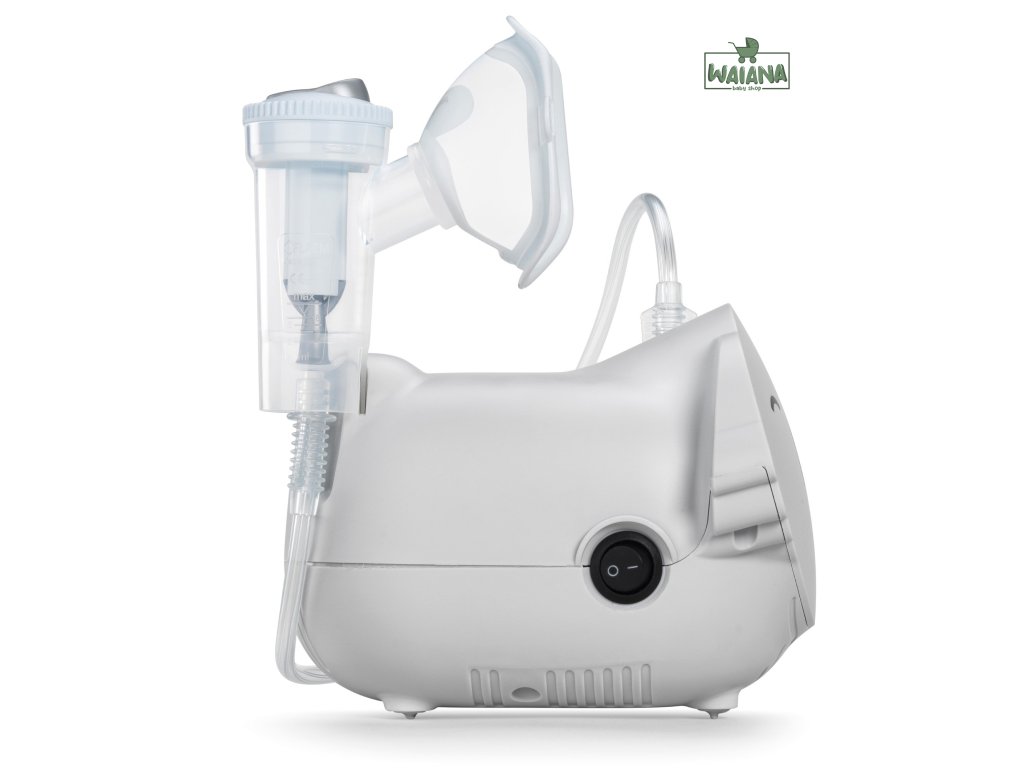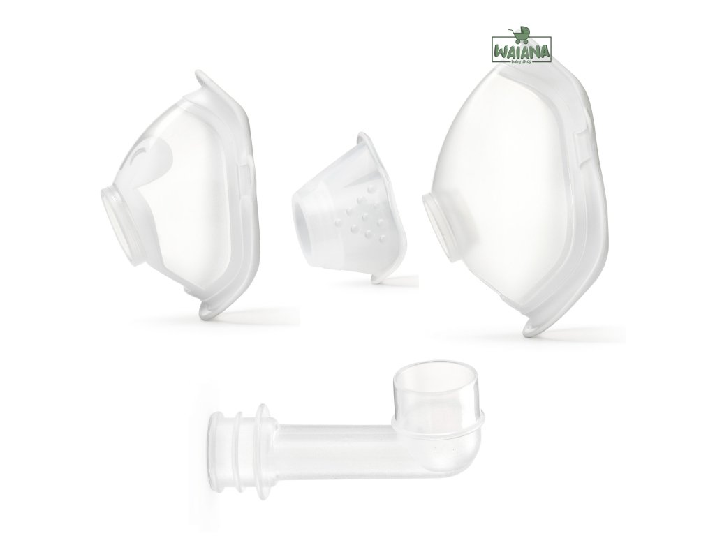 Najmenšia maska je vybavená plastovým konektorom zahnutým pod uhlom 90°, ideálnym na podávanie liekov ležiacemu dieťaťu. Špeciálny otvor v trubici konektora zabraňuje uduseniu a zároveň je rozprašovanie veľmi bezpečné. Toto je pohodlné riešenie pre rodičov, najmä tých, ktorí používajú inhalátor prvýkrát.