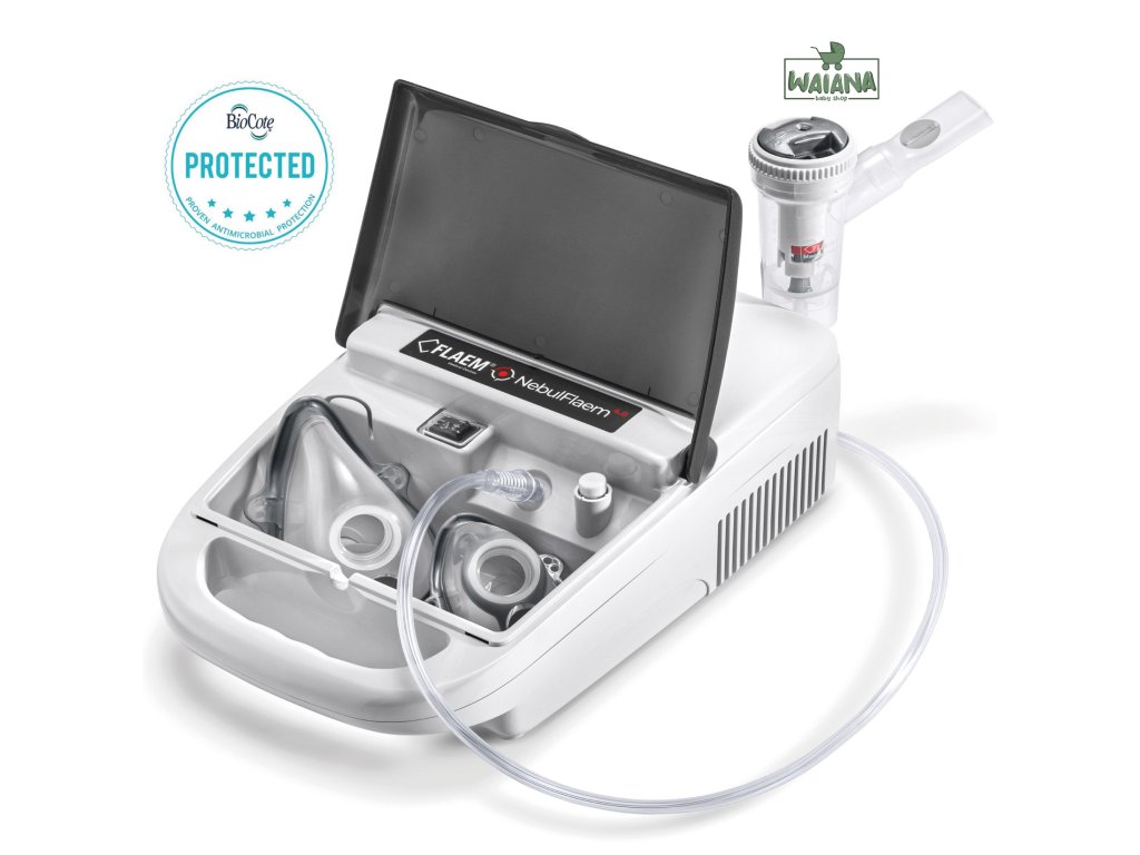 NebulFlaem 4.0 je kompletný a efektívny profesionálny nebulizačný systém pre dospelých a deti. Ide o inhalátor so sadou všetkého potrebného príslušenstva a najmodernejším nebulizérom Flaem RF9. Inhalátor NebulFlaem 4.0 je chránený antibakteriálnou prísadou Biocote, ktorá zaisťuje plnú bezpečnosť používania.