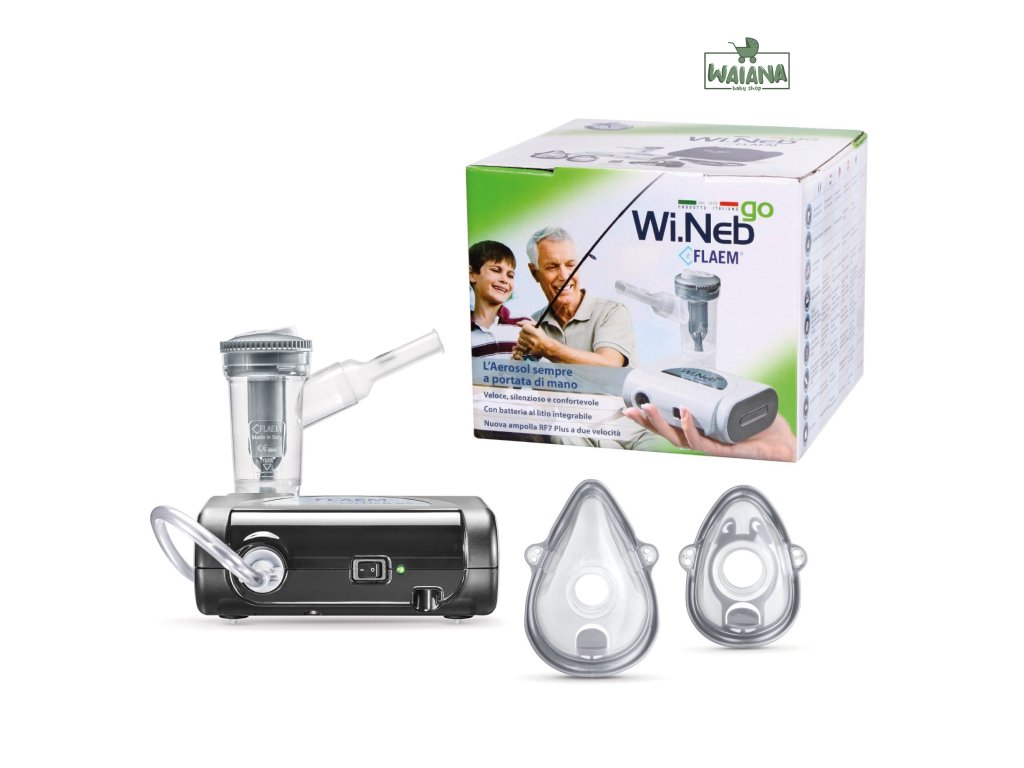 Najnovší inhalátor FLAEM. Veľmi tichý chod a nízka spotreba energie. Vďaka svojej inovatívnej technológii Wi.Neb Go dosiahol vysoký výkon, kompaktné rozmery a ľahkosť, čo z neho robí ideálny domáci a prenosný inhalátor.