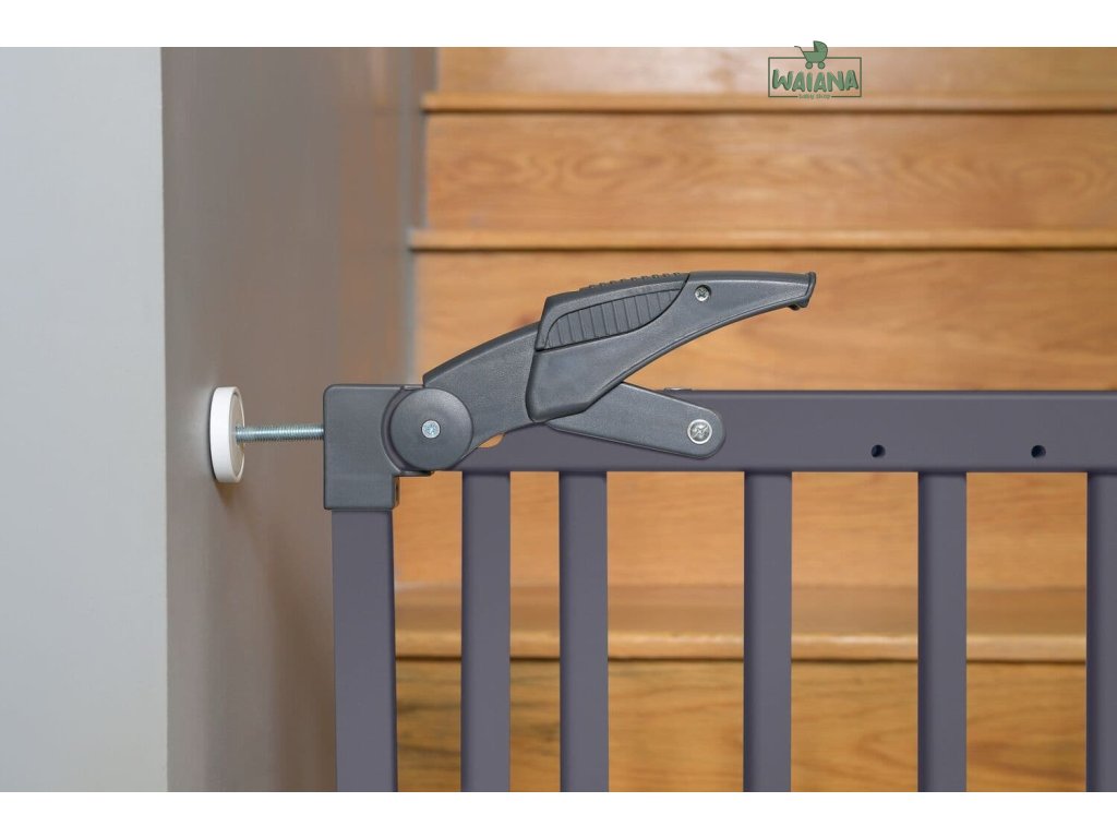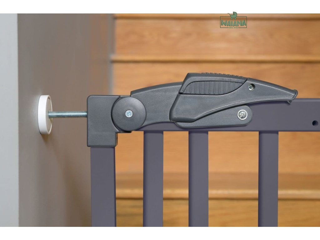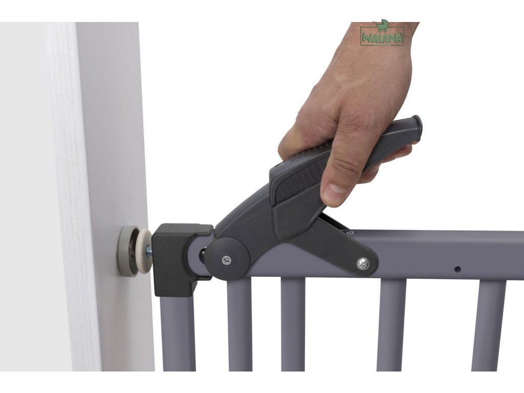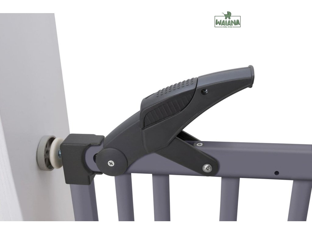 Zábranu lze otevřít v obou směrech a snadno a bezpečně zaklapne. Dospělá osoba zábranu otevře jednou rukou (dvoustupňové bezpečnostní zavírání). Rukojeť je vyrobená z plastu, snadno se čistí a dezinfikuje.